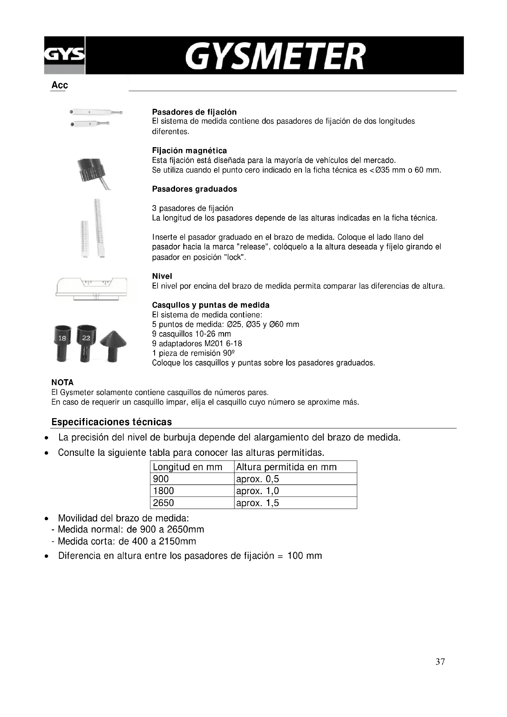 - Exporeren Sie in PDF oder drucken Sie direkt tech.gys.frESPresentación El Gysmeter es un sistema de medida electrónica que le permite medir y controlar las dimensiones de la carrocería y del bastidor. La herramienta está compuesta de: