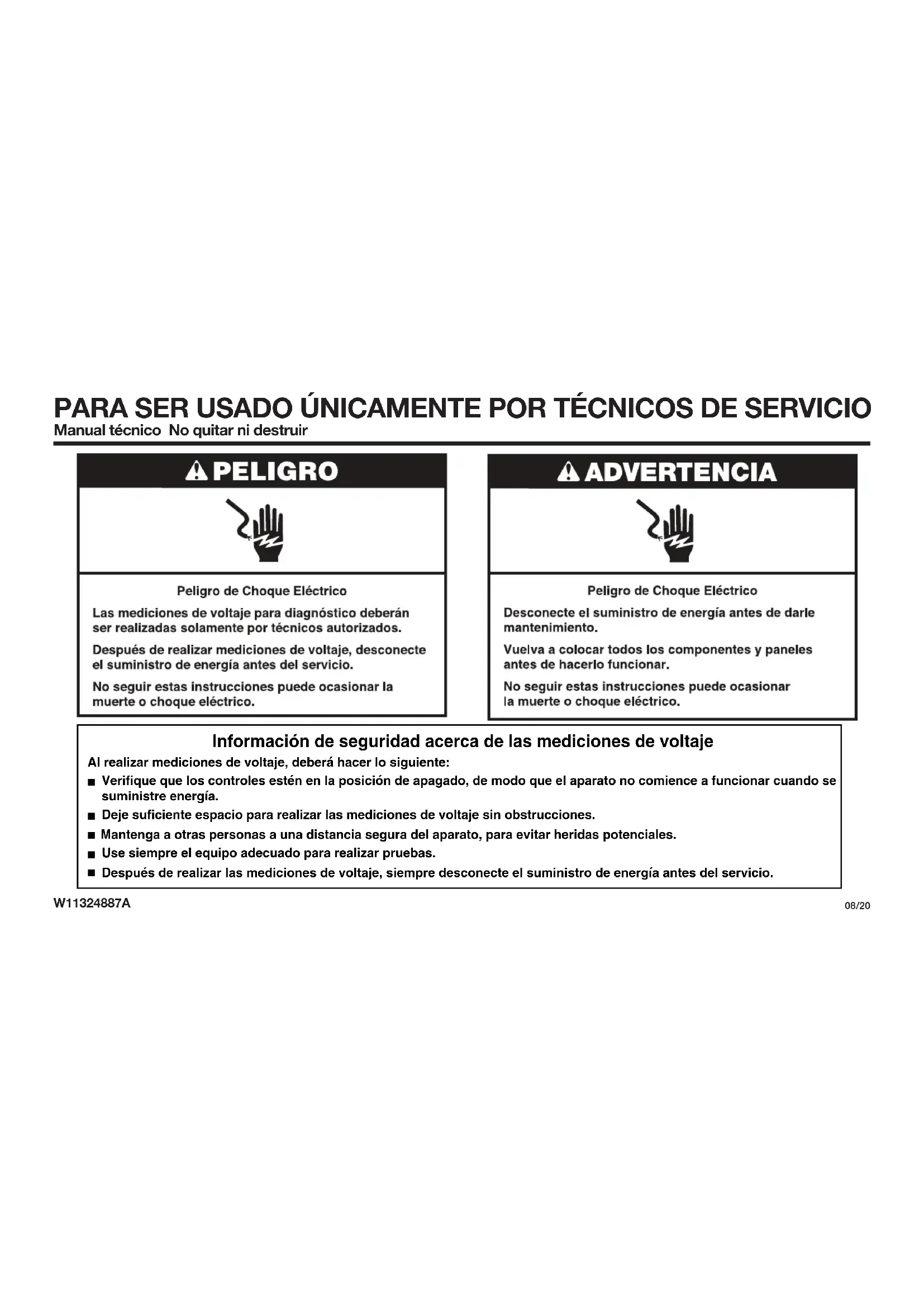 Después de realizar las mediciones de voltaje, siempre desconecte el suministro de energía antes del servicio.PARA SER USADO ÚNICAMENTE POR TÉCNICOS DE SERVICIO