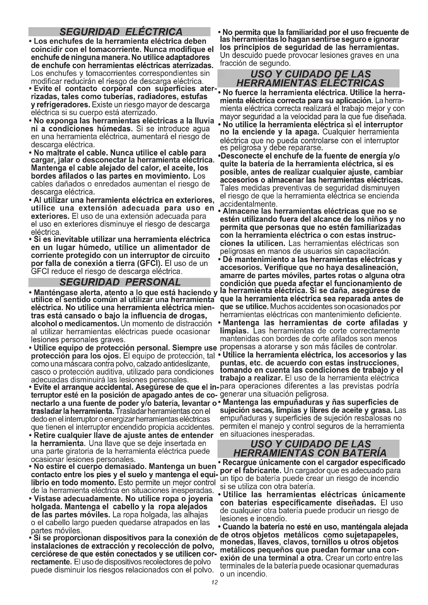 - Mantenga a los niños y a los espectadores alejados mientras utiliza una herramienta eléctrica. Las distracciones pueden ocasionar la pérdida de control.12