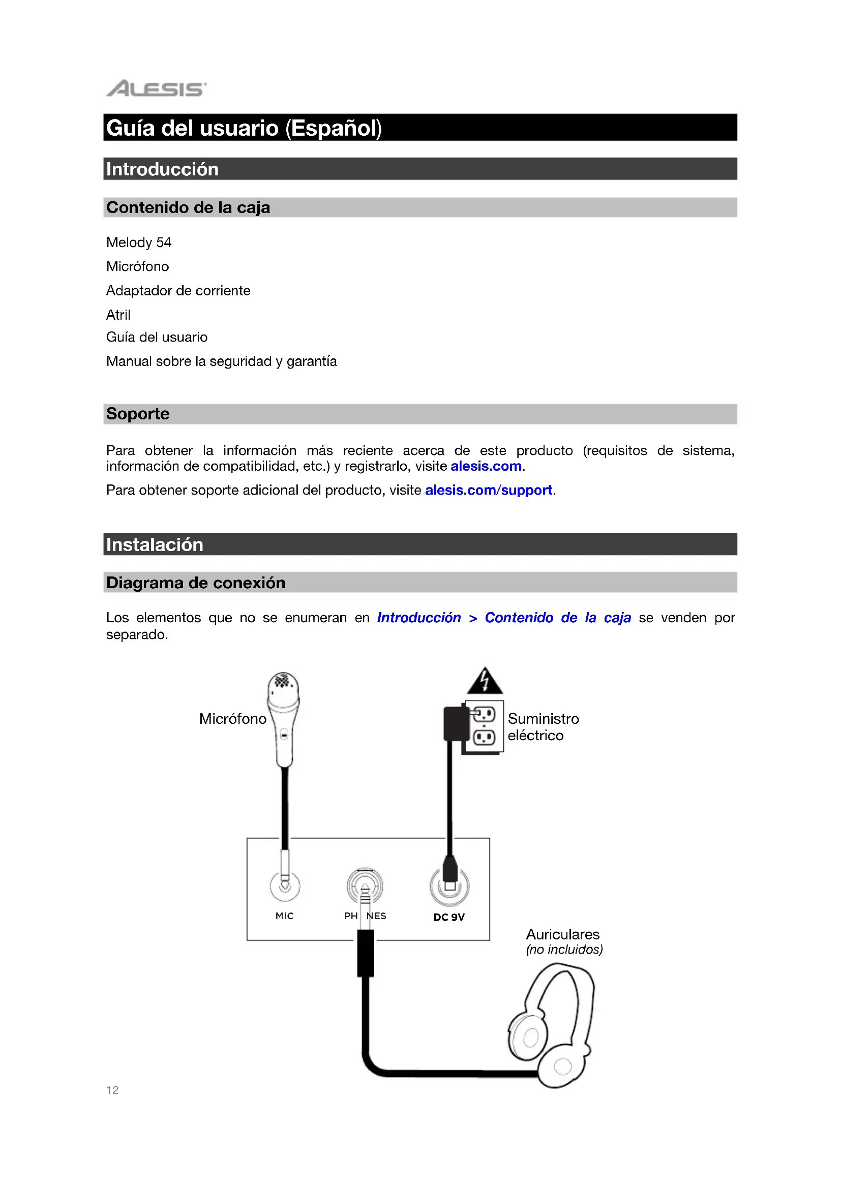 Para Obtener soporte adicional del producto, visite alesis.com/support.
