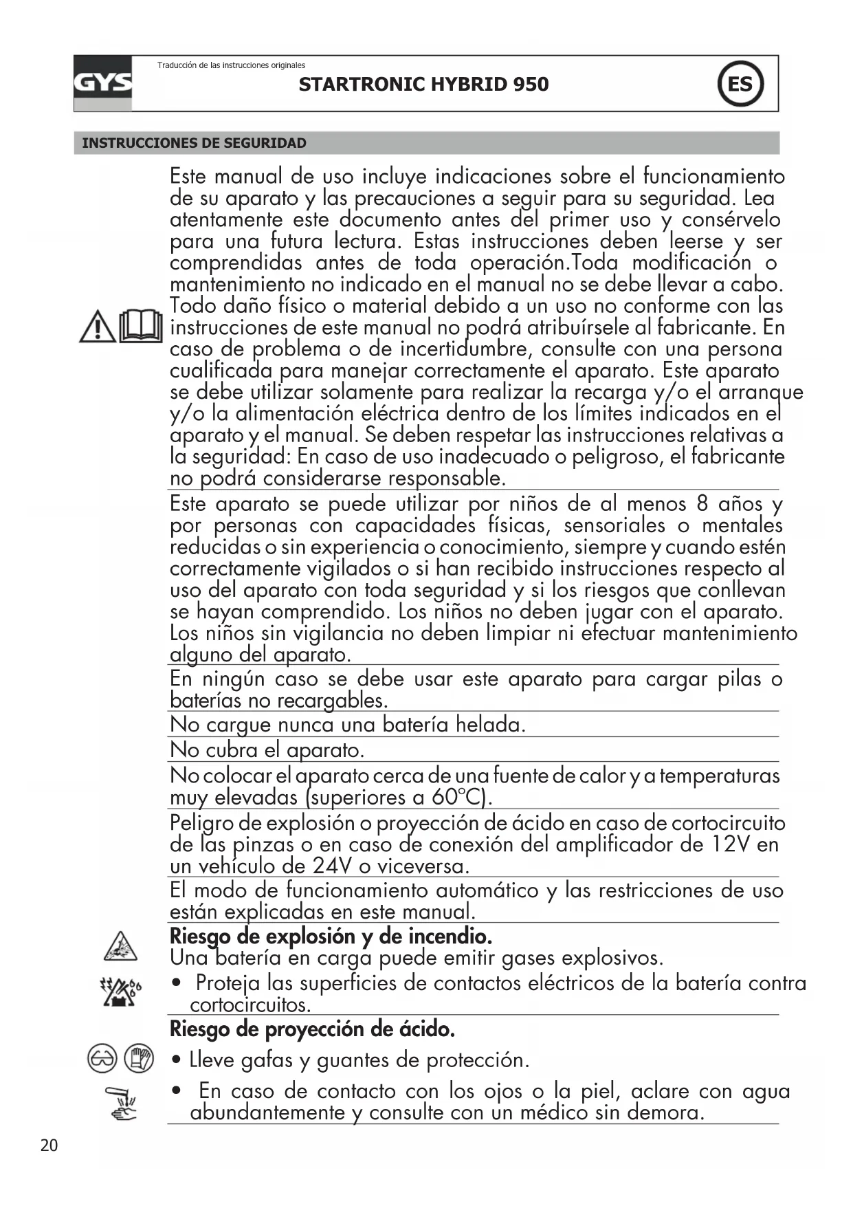 MANUAL DE USUARIO Startronic Hybrid 950 GYS