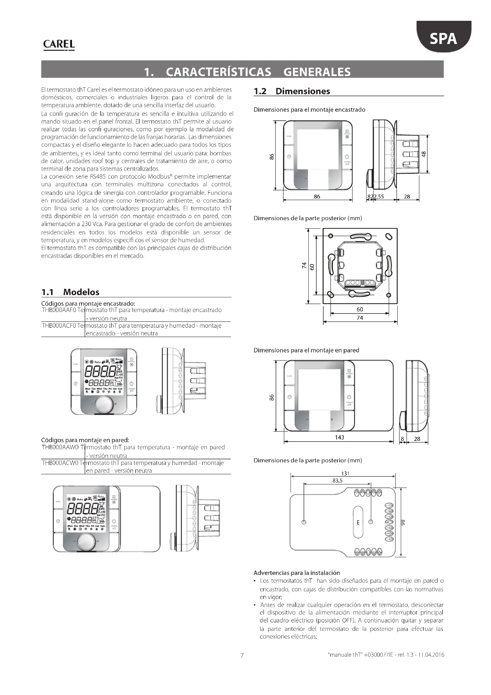 MANUAL DE USUARIO thT Carel