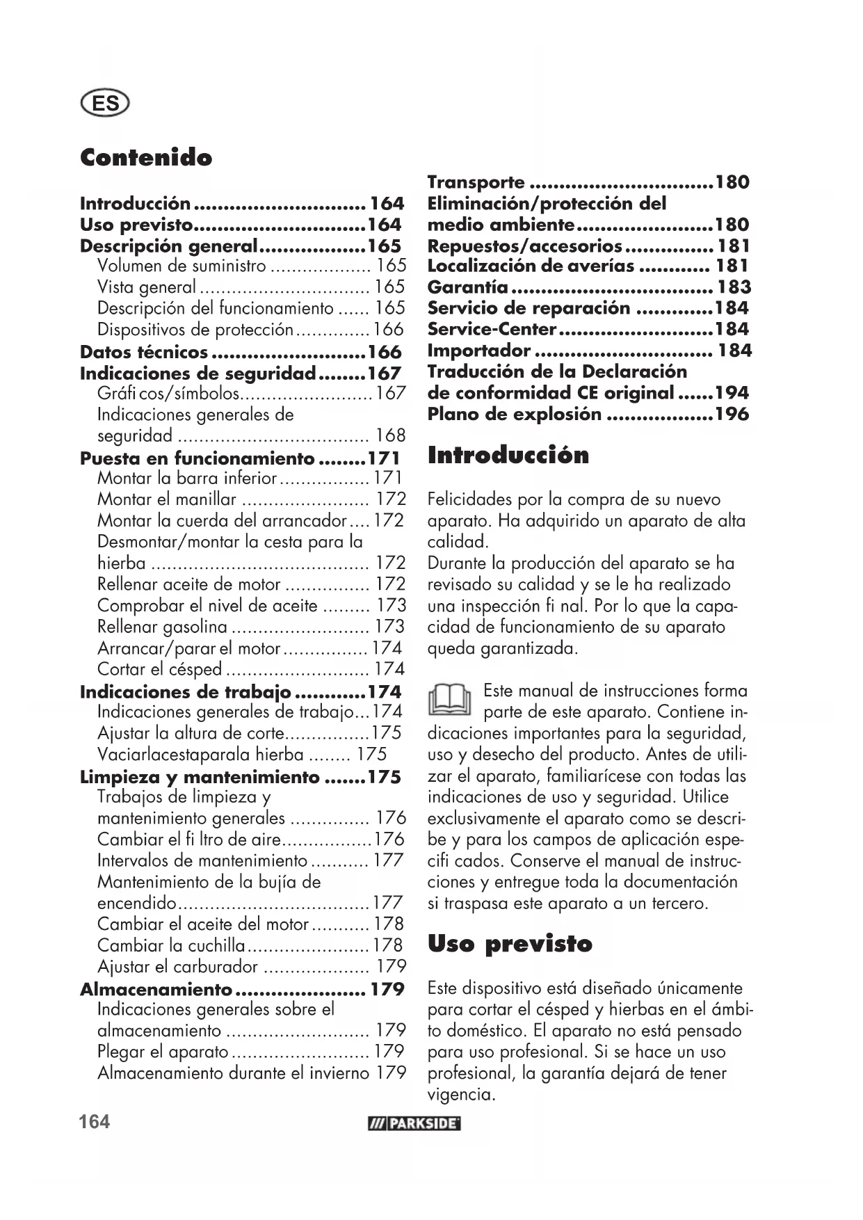 Indicaciones de seguridad.......167