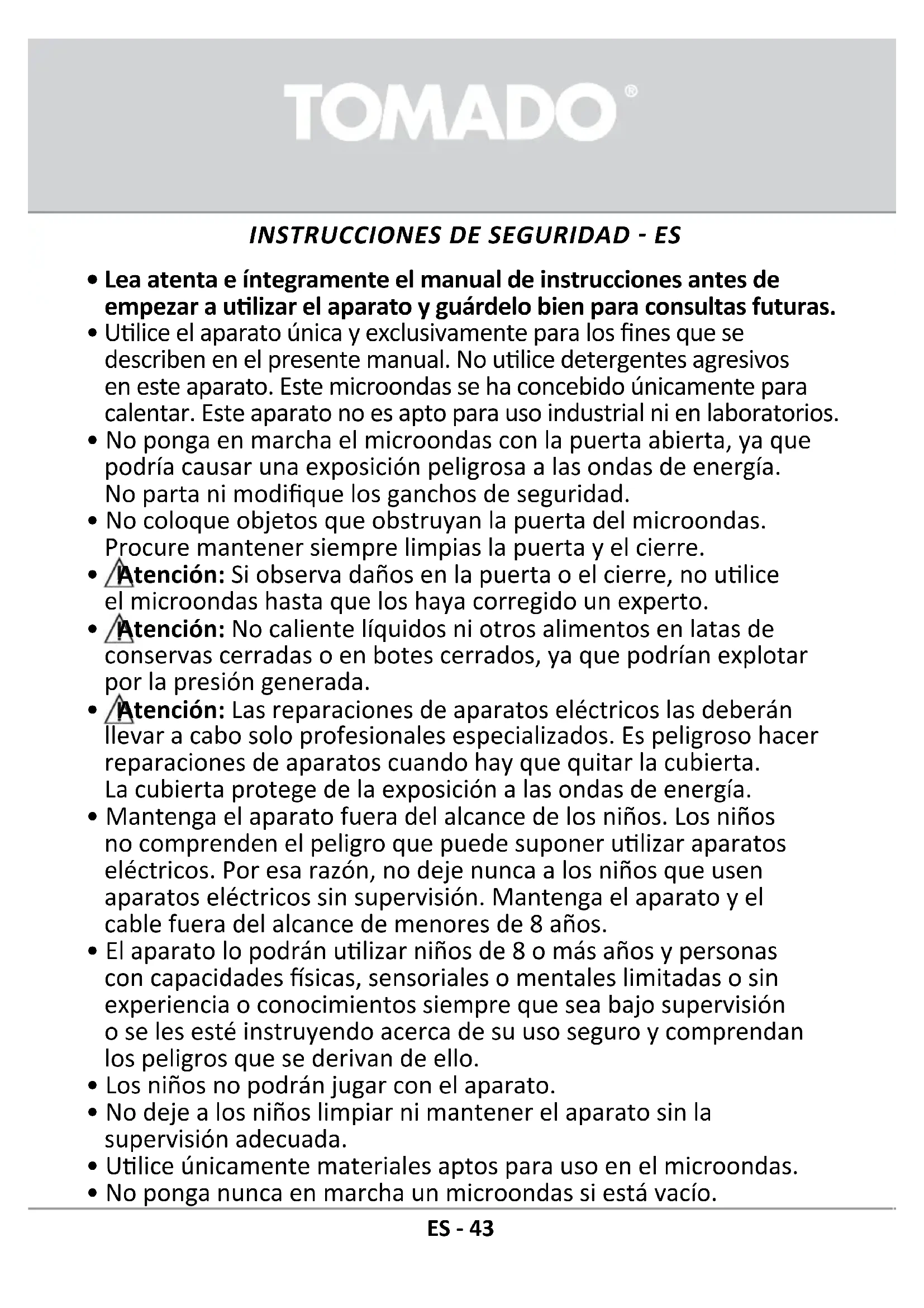 TMS2002B - Microondas Tomado - Manual de uso y guía de instrucciones gratis