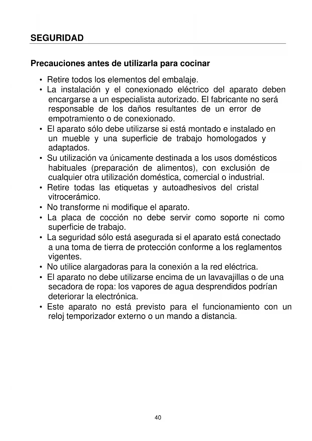 - La placa de cocción no debe servir como soporte ni como superficie de trabajo.