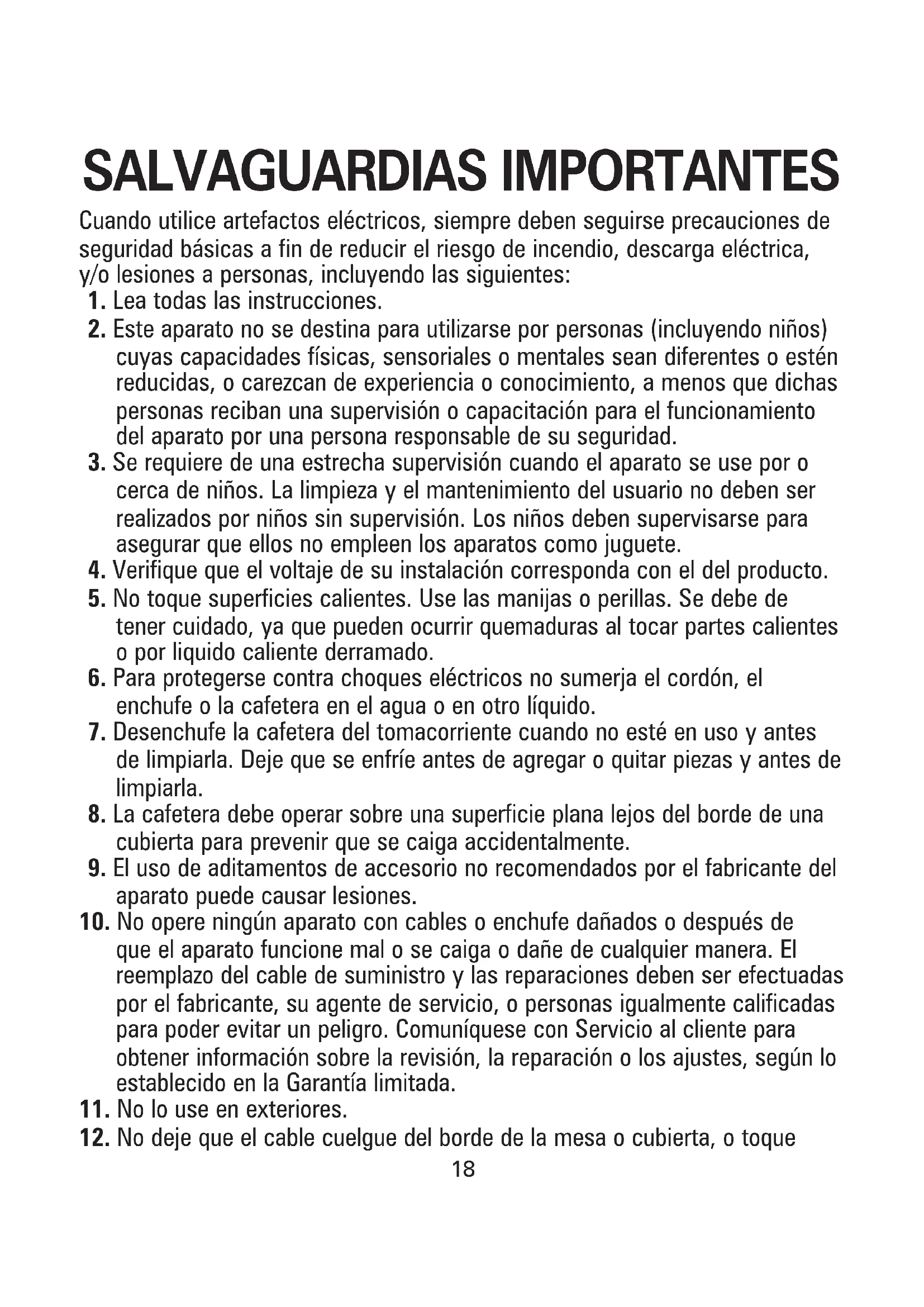 8. La cafetera debe operar sobre una superficie plana lejos del borde de una
