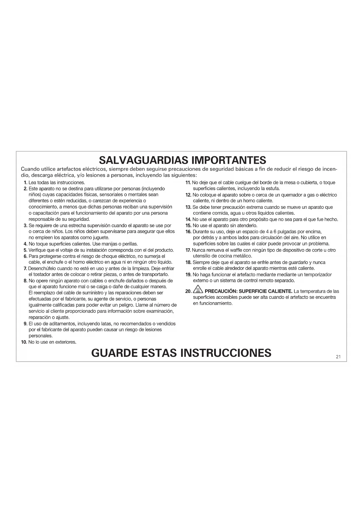 17. Nunca remueva el waffle con ningún tipo de dispositivo de corte u otro