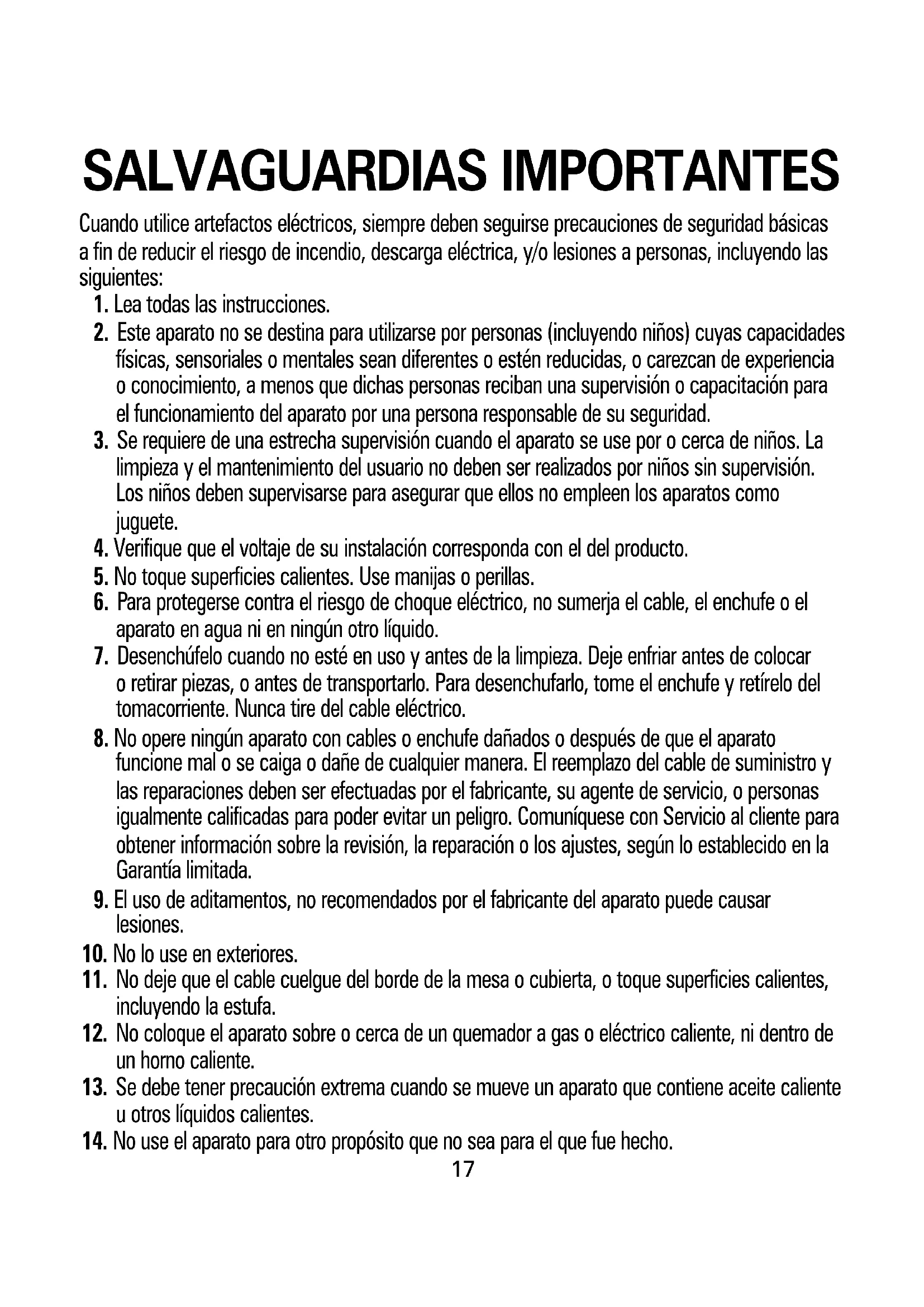 14. No use el aparato para otro propósito que no sea para el que fue hecho.