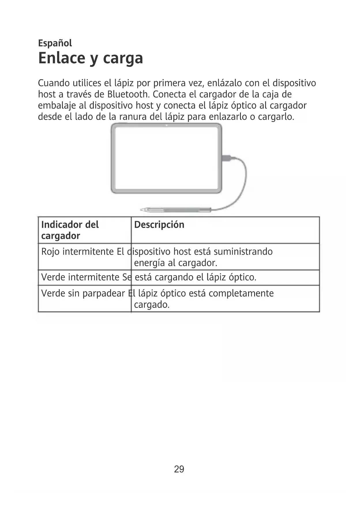 - Le recomendamos que utilice accesorios estándares de Huawei. De lo contrario, es posible que el lápiz óptico no pueda enlazarse o cargarse correctamente.