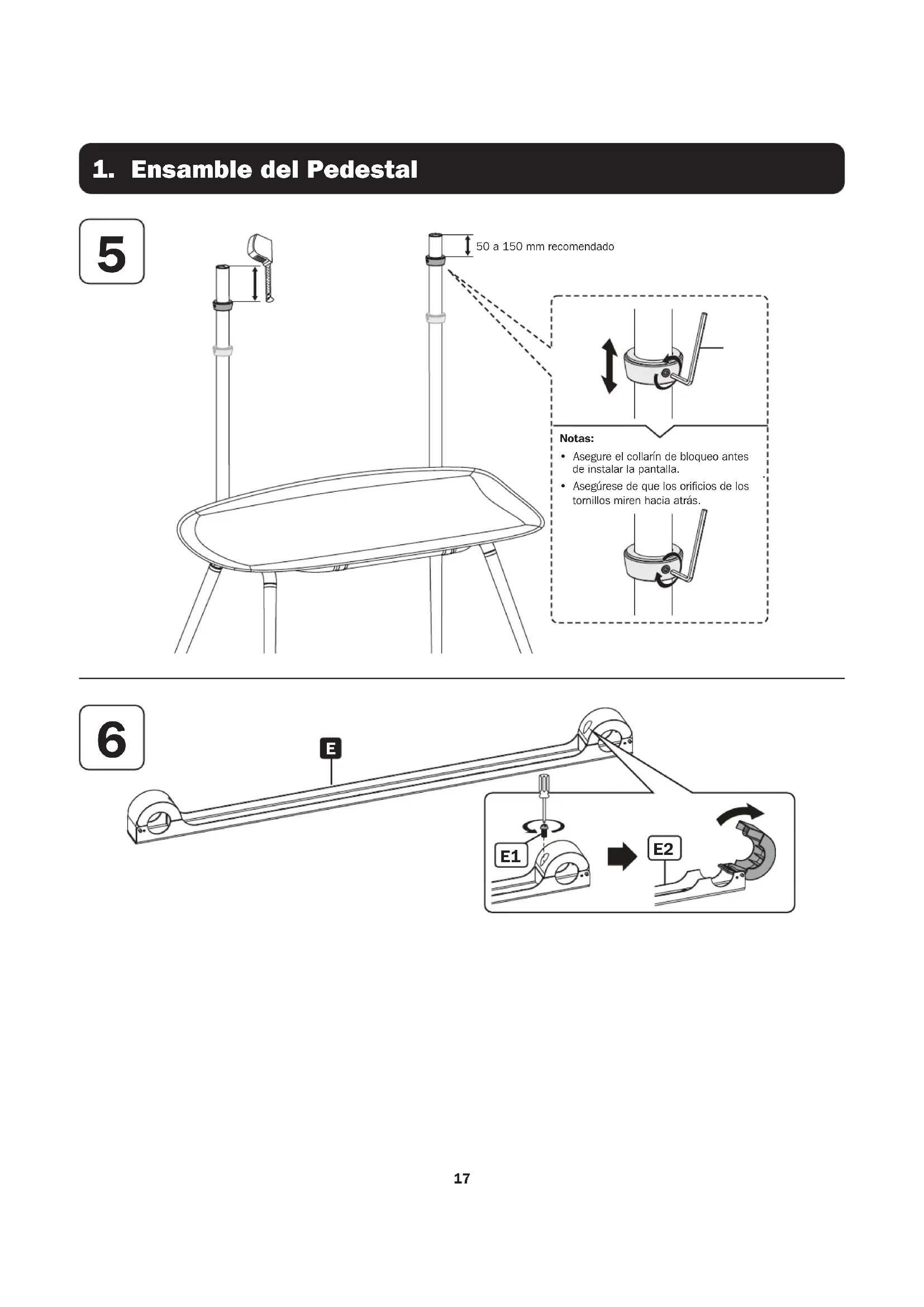 P-C P-E P-B P-A P-D P-A Para evitar que la pantalla se vuelque, debe instalarse una cuerda de alambre anticaída.21