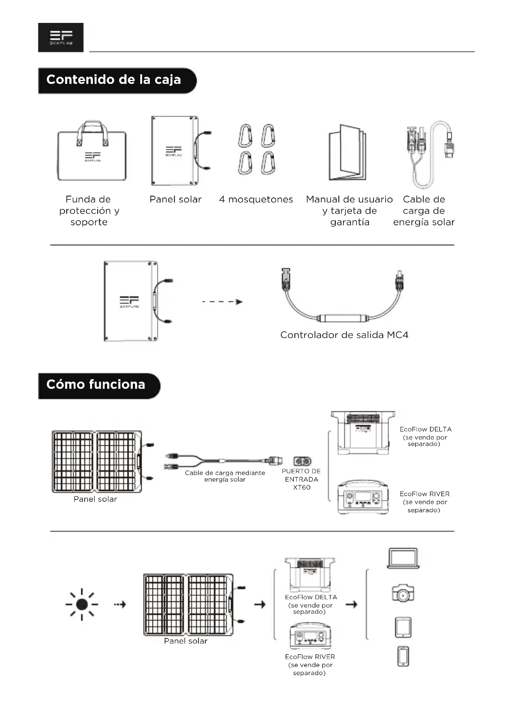 160W Solar Panel - Batería portátil ECOFLOW - Manual de uso y guía de instrucciones gratis