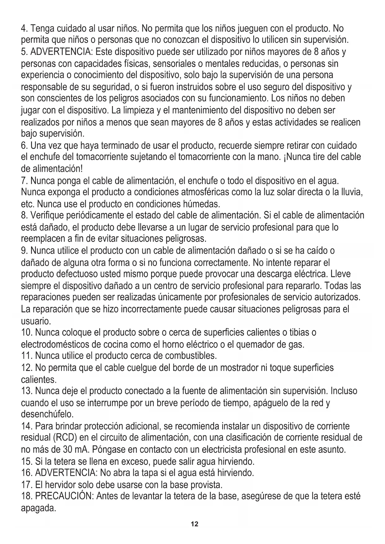 15. Si la tetera se llena en exceso, puede salir agua hirviendo.