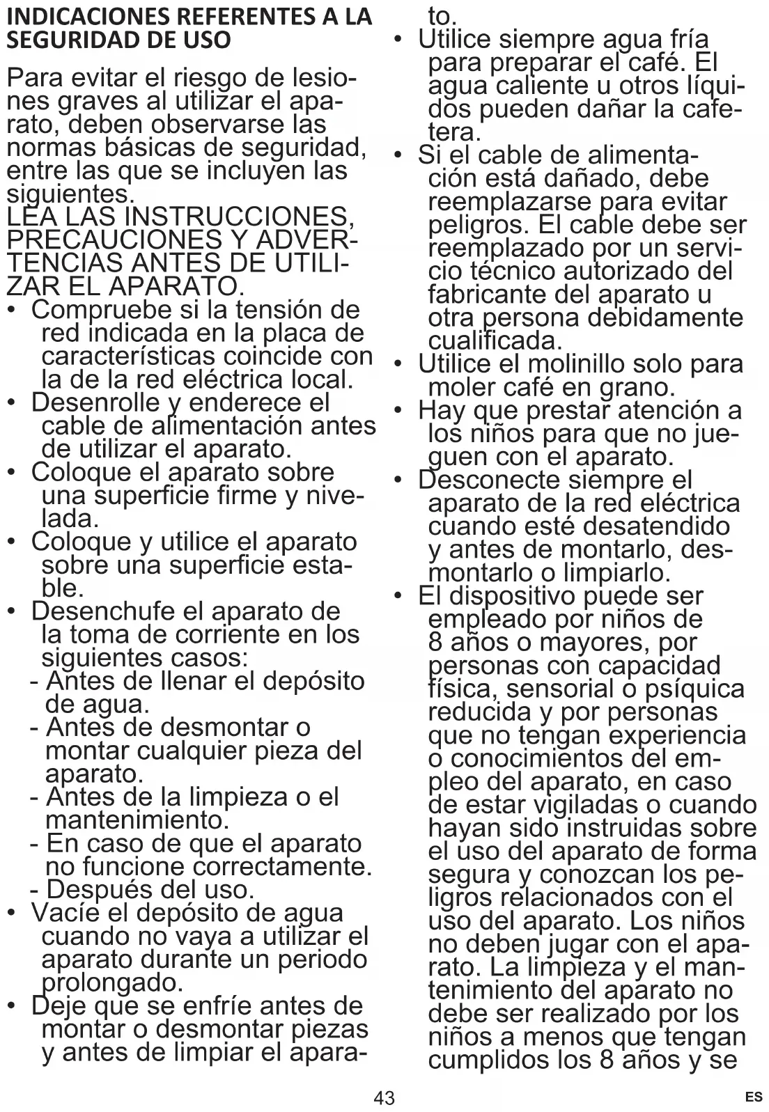 - Los niños no son conscien- tes de los peligros que se pueden producir al usar aparatos eléctricos. Por lo tanto, mantenga la cafete- ra fuera del alcance de los niños.