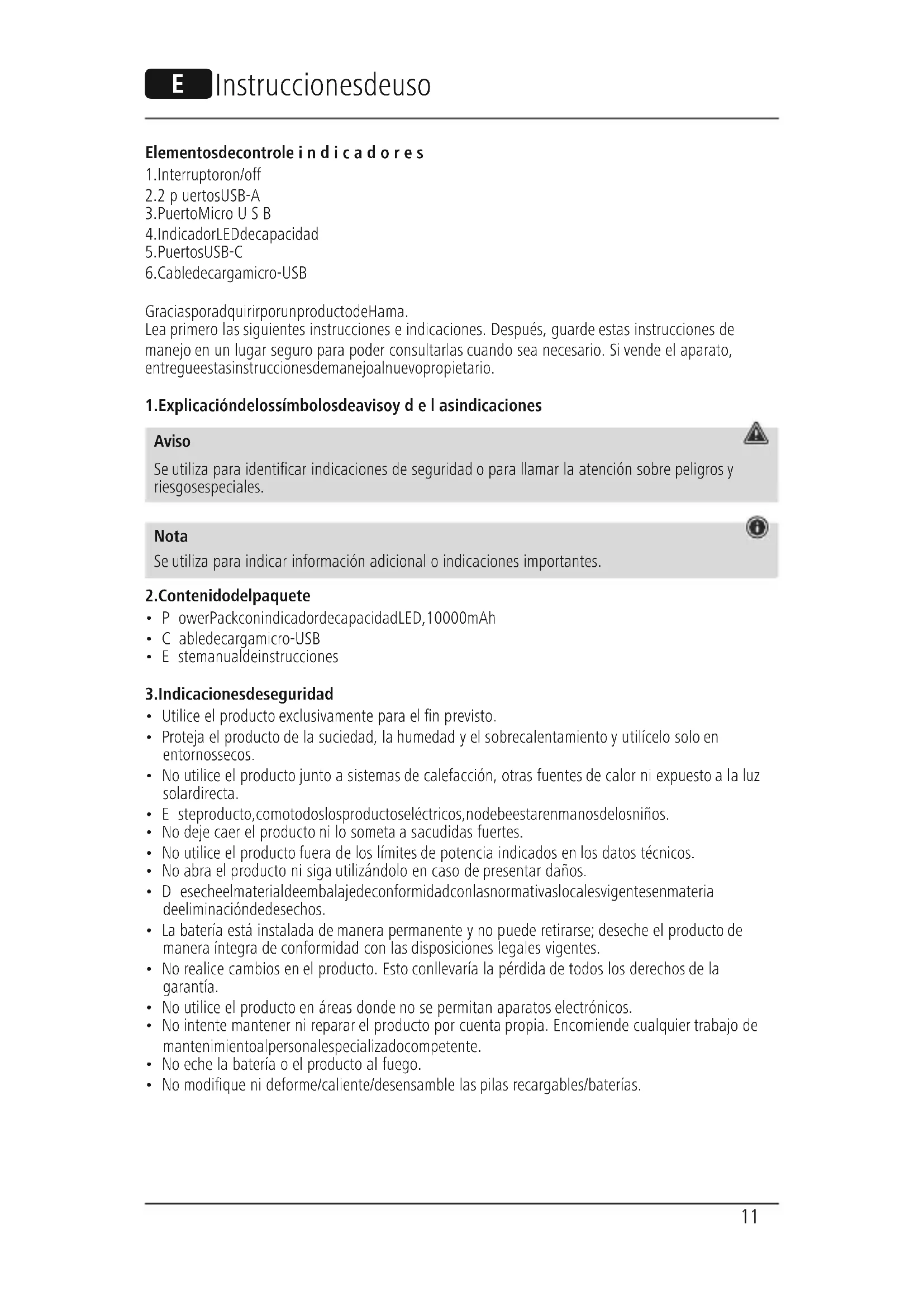 LED10S - Batería portátil HAMA - Manual de uso y guía de instrucciones gratis