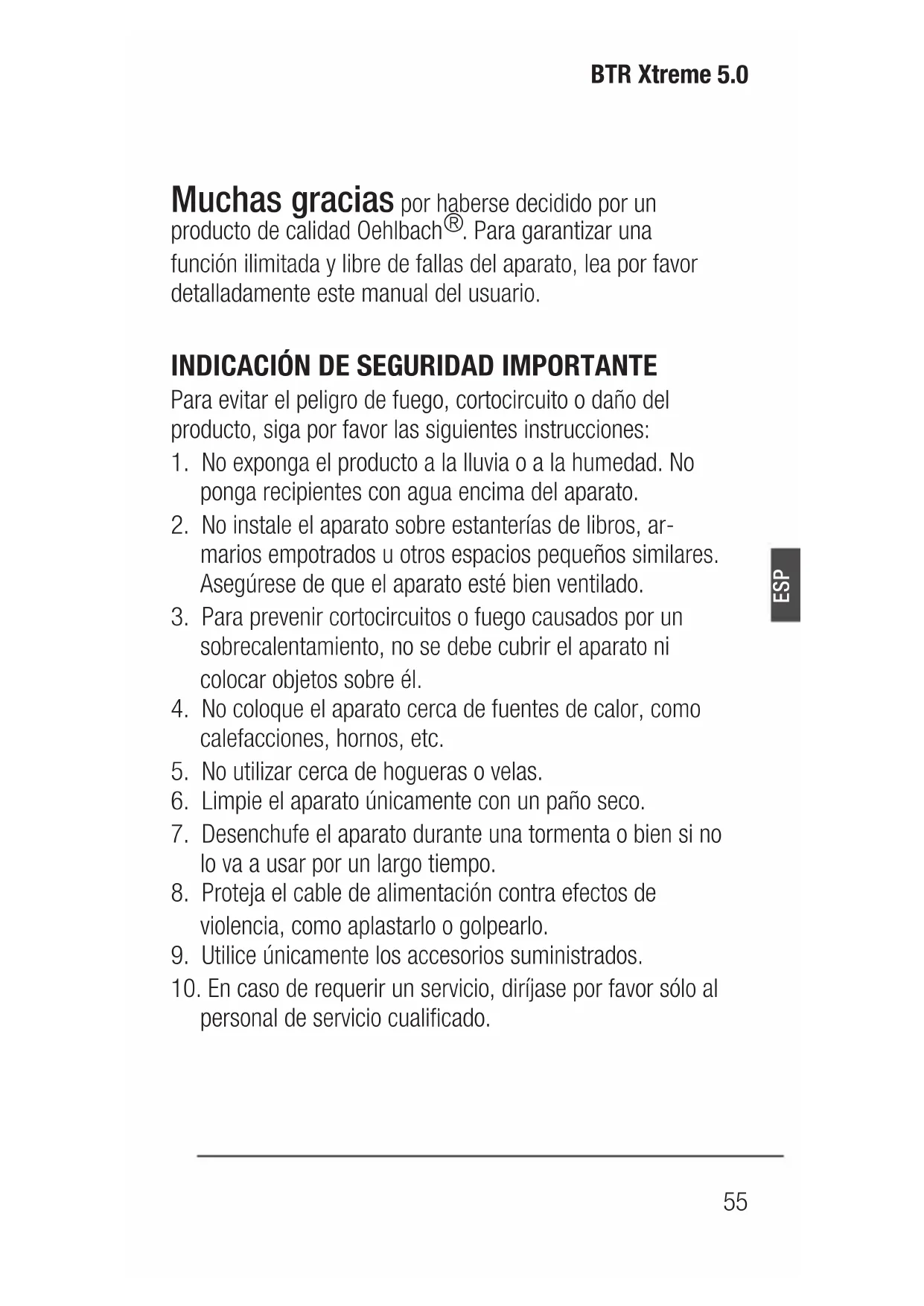 MANUAL DE USUARIO BTR Xtreme 5.0 Oehlbach