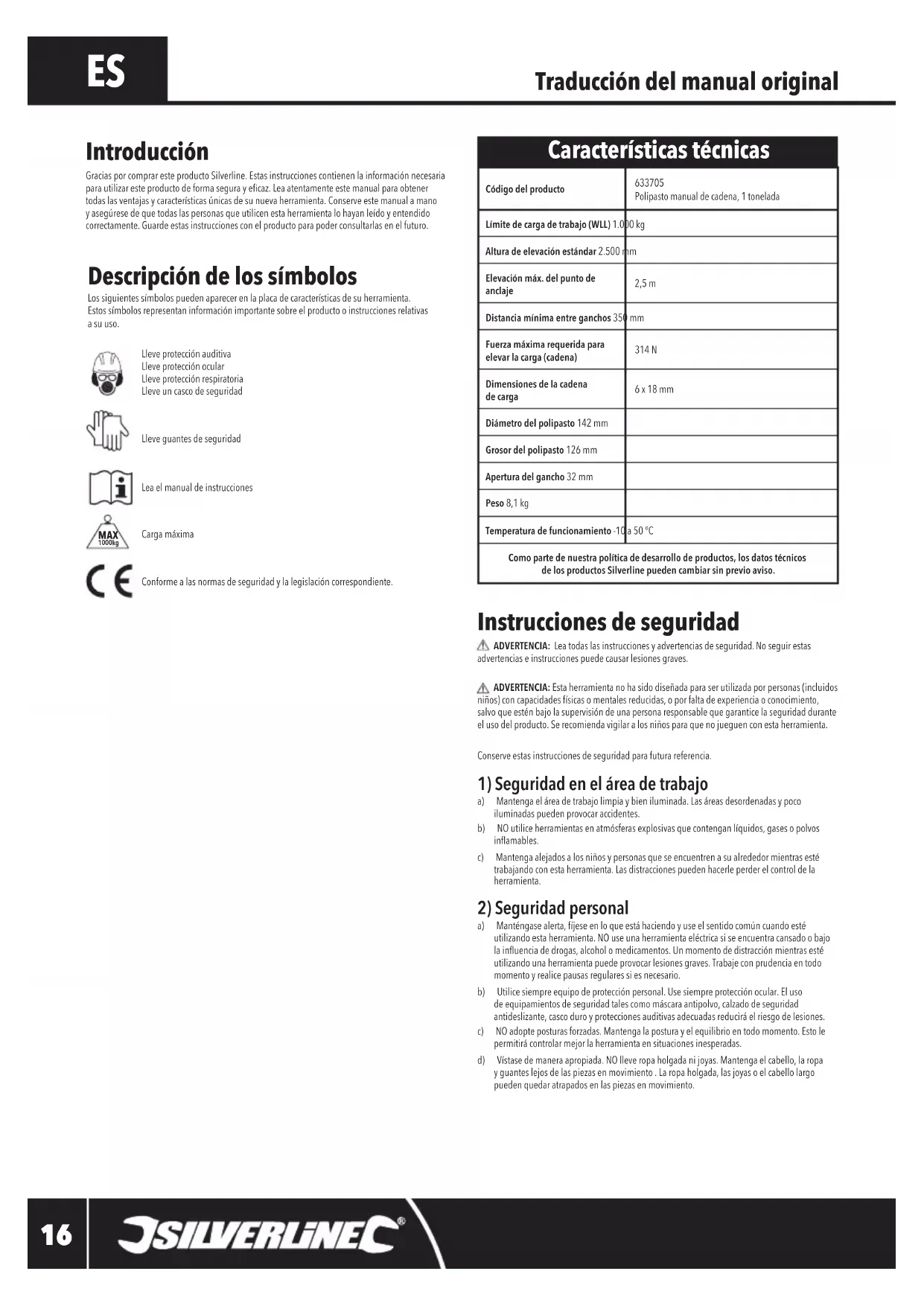 633705 - Polipasto SILVERLINE - Manual de uso y guía de instrucciones gratis