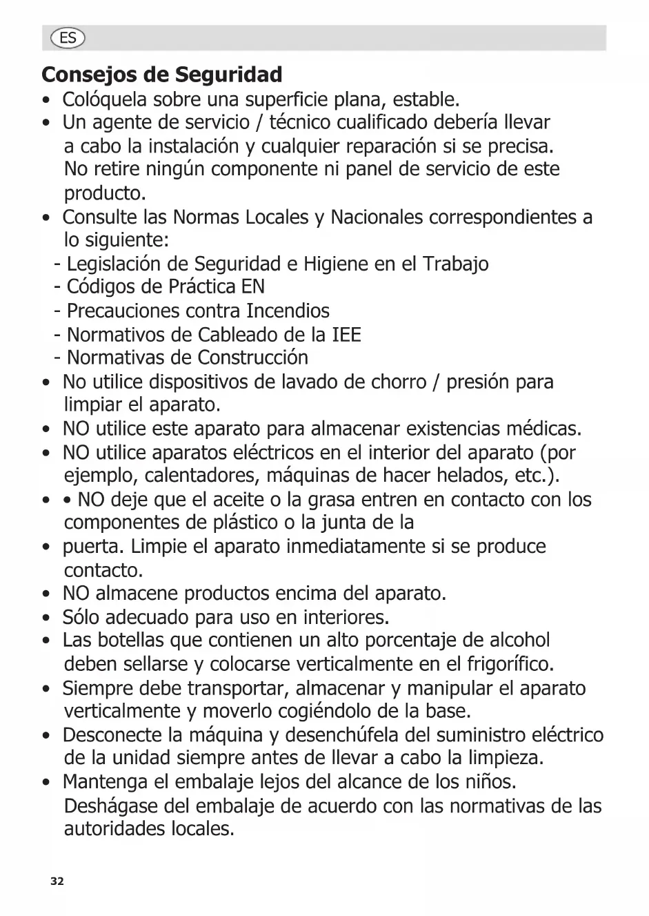 - Cable de tierra (de color verde / amarillo) al terminal marcado como E El aparato debe estar conectado a tierra, utilizando un circuito de conexión a tierra especializado. Si tiene alguna duda, consulte a un electricista cualificado. Los puntos de aislamiento eléctrico deben mantenerse libres de cualquier obstrucción. En caso de precisarse una desconexión de emergencia, deben estar disponibles de forma inmediata. Desecho Las normativas de la UE requieren que los productos de refrigeración sean desechados por compañías especializadas que extraigan o reciclen todos los gases, componentes metálicos y de plástico. Consulte a su autoridad local de recogida de residuos a la hora de desechar su aparato. Las autoridades locales no están obligadas a eliminar los equipos de refrigeración comerciales pero pueden ofrecer consejo sobre cómo desechar los equipos localmente. Otra opción es llamar a la línea de asistencia de para pedir información sobre las compañías nacionales de desechos de la UE.37