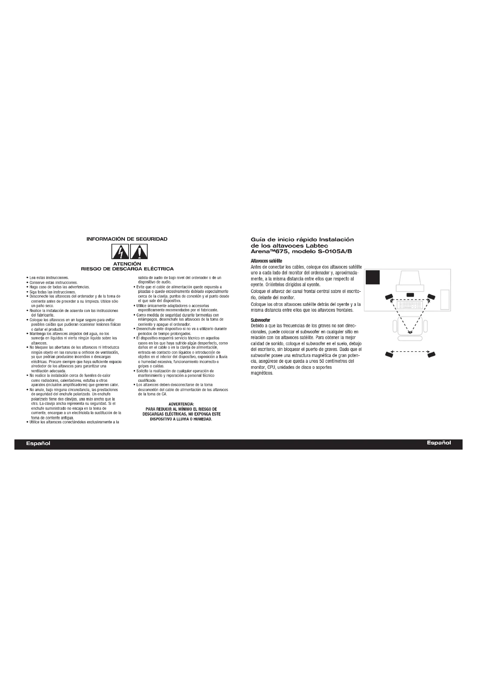 - Mantenga los altavoces alejados del agua, no los sumerja en líquidos ni vierta ningún líquido sobre los altavoces.