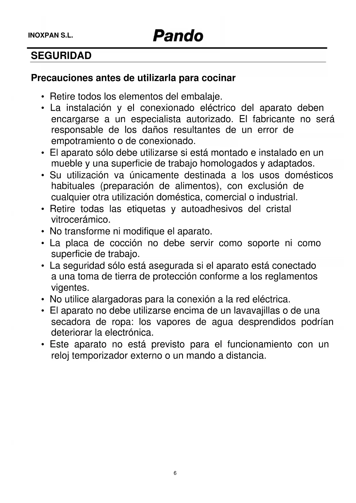 - La placá de coccción no debe servir como soporte ni como superficie de trabajo.