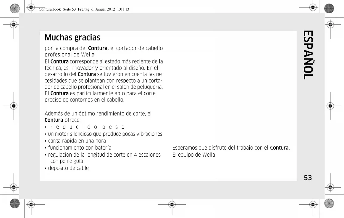 Encuentra gratis el manual del aparato Contura Wella en formato PDF.