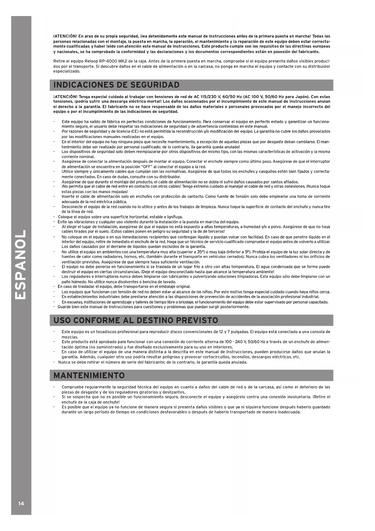 MANUAL DE USUARIO RP4000 MK2 Reloop