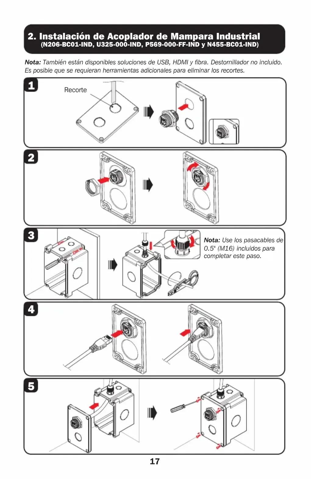 2 Instalacion de Acoplador de Mampara Industrial 17 (N206-BC01-IND, U325-000-IND, P569-000-FF-IND, N455-BC01-IND) - Instalación de Conector Industrial Keystone (N206-KJ01-IND) 19