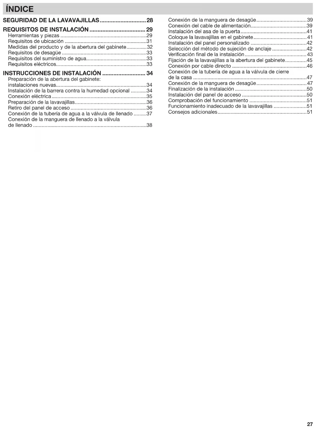 - Funcionamiento inadecuado de la lavavajillas p. 51
