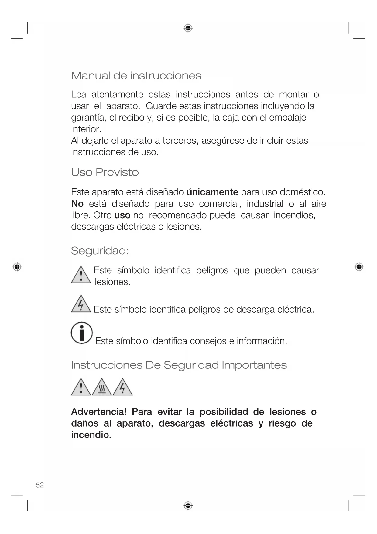 - Un uso incorrecto o inadecuado puede dañar el aparato y causar lesiones al usuario.