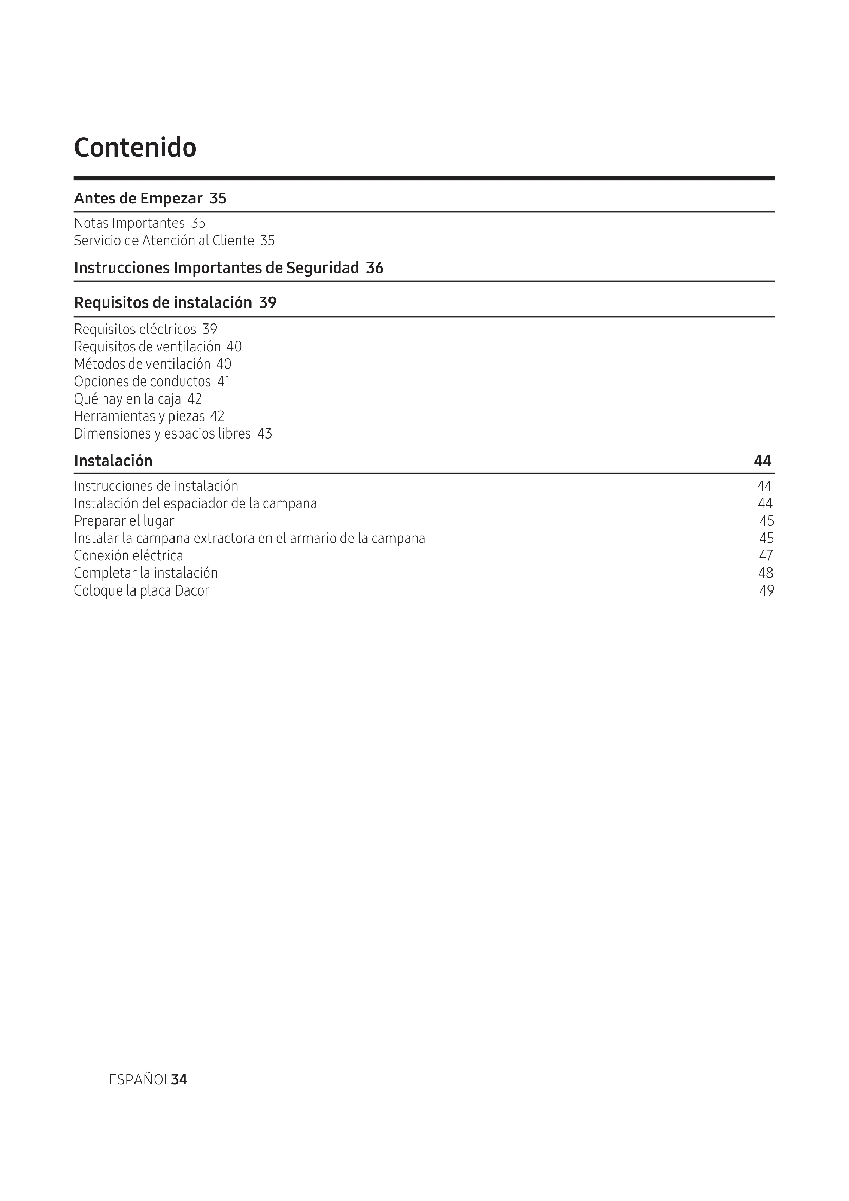 - Para obtener un uso más eciente de su nueva campana extractora, lea el manual de "Uso y Cuidado". InstalaciónESPAÑOL48