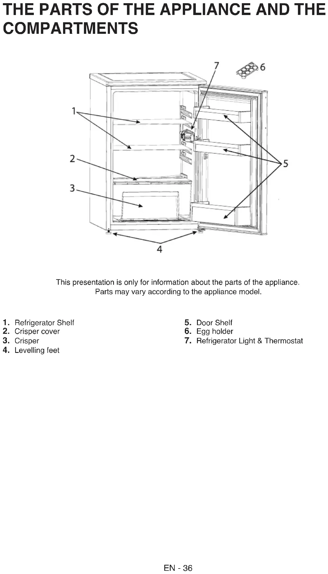 - Asegúrese de que ningún artículo esté en contacto directo con la pared posterior del aparato, ya que la escarcha se desarrollará y el embalaje se pegará a él. No abra la puerta del refrigerador con frecuencia.