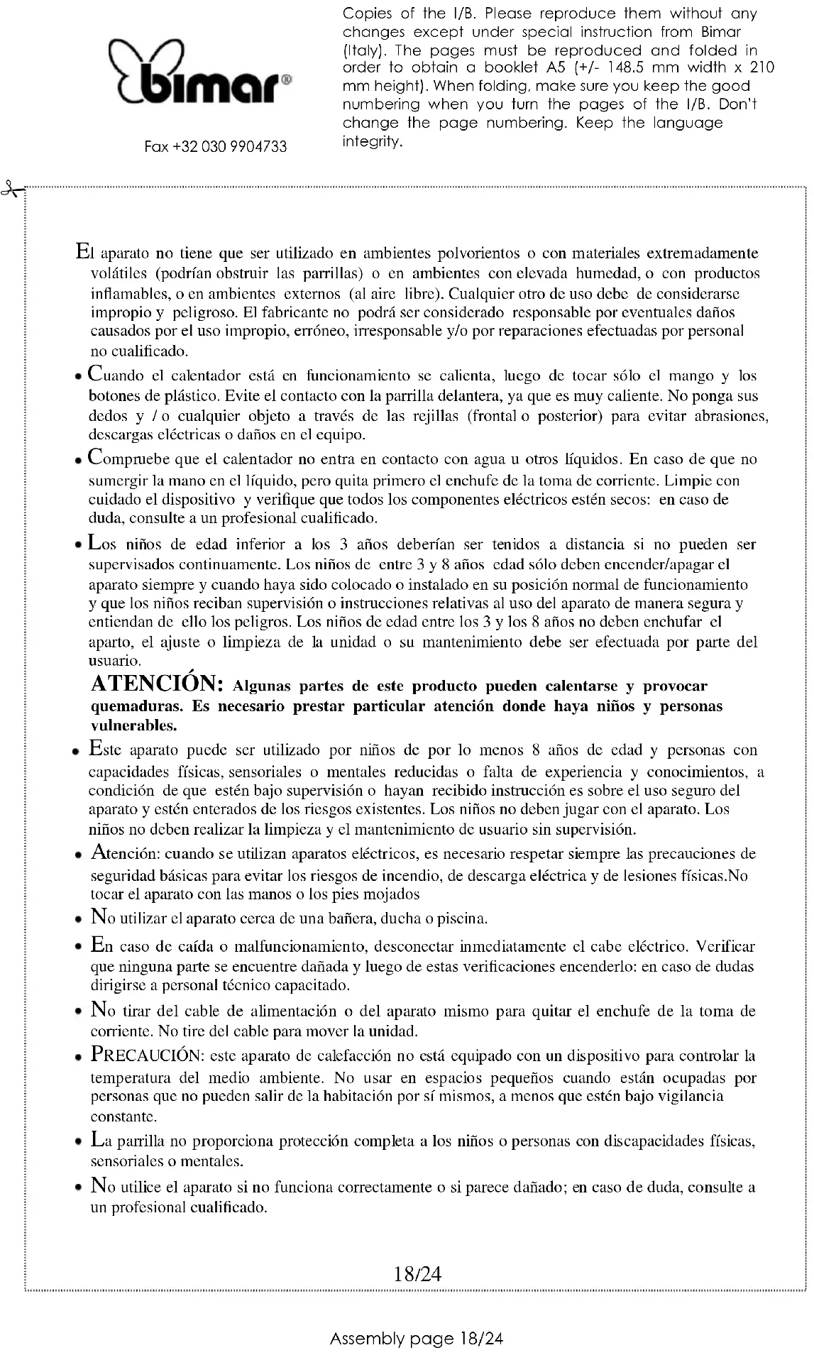 ATENCION: Algunas partes de este producto pueden calentarse y provocar quemaduras. Es necessario prestar particular atencion sobre haya niños y personas vulnerabilities.