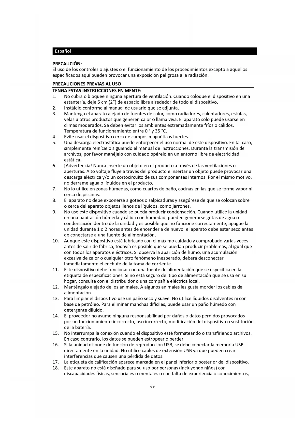 15. No interrumpa la conexión cuando el dispositivo esté formateando o transfiriendo archivos.
