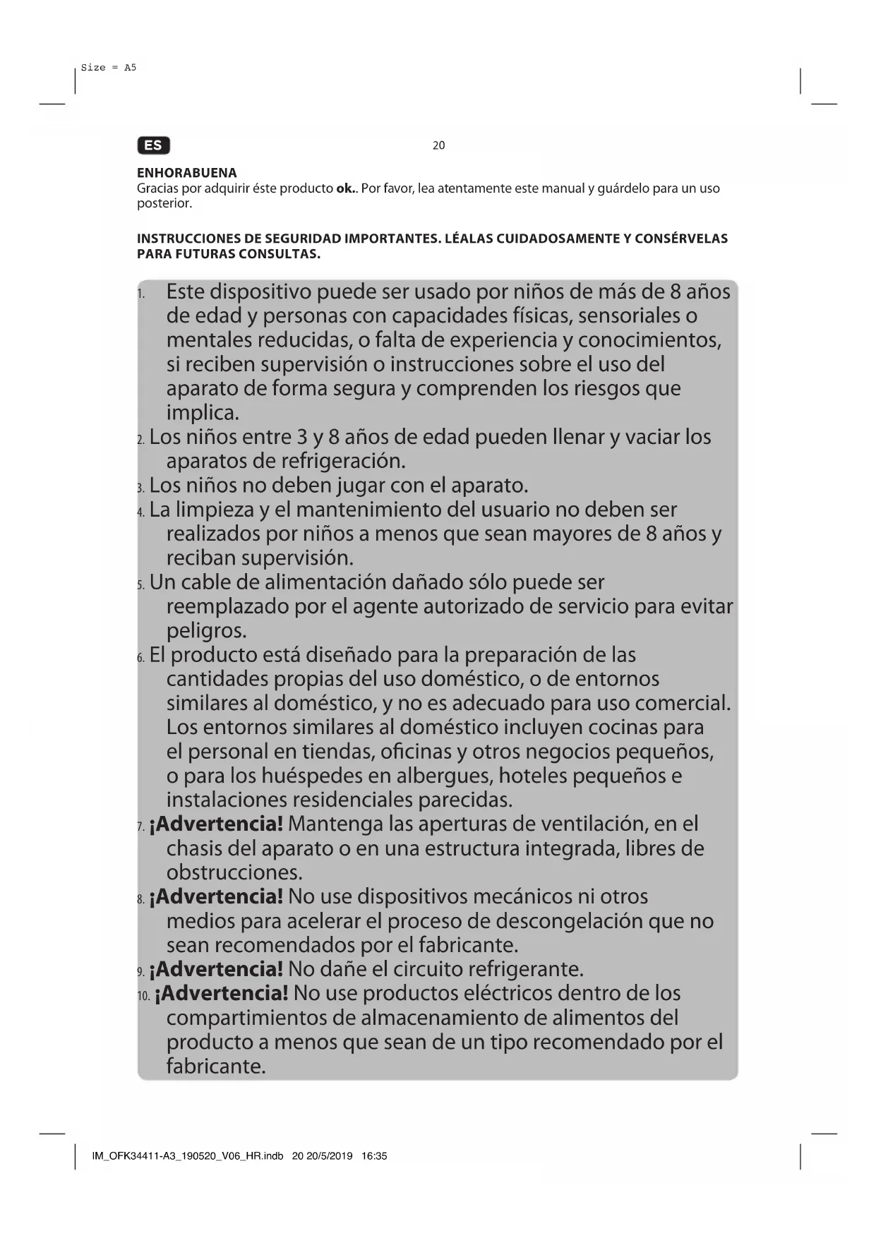 compartimientos de almacenamiento de alimentos del producto a menos que sean de un tipo recomendado por el fabricante. IM_OFK34411-A3_190520_V06_HR.indb 20 20/5/2019 16:3521