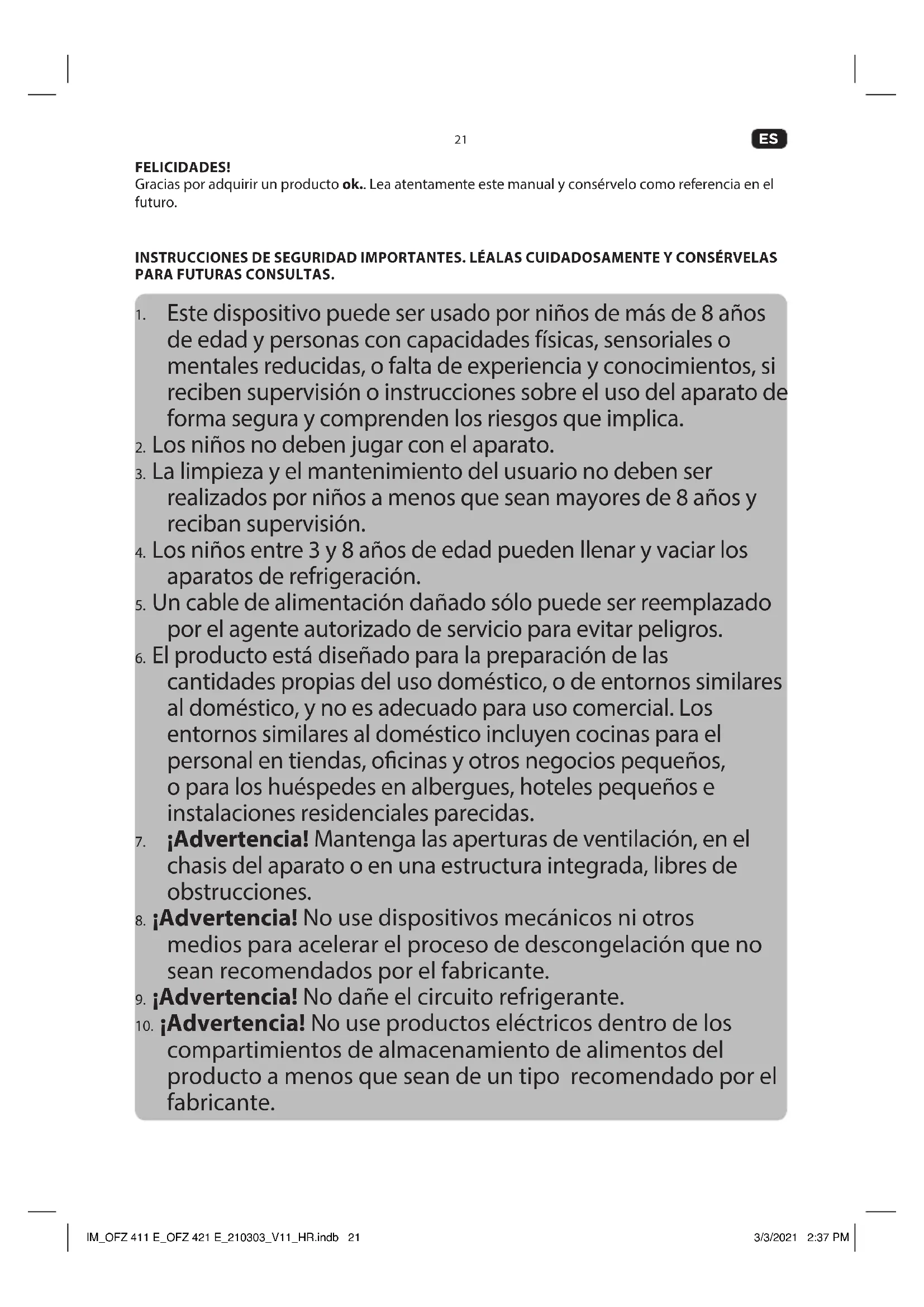 compartimientos de almacenamiento de alimentos del producto a menos que sean de un tipo recomendado por el fabricante. IM_OFZ 411 E_OFZ 421 E_210303_V11_HR.indb 21IM_OFZ 411 E_OFZ 421 E_210303_V11_HR.indb 21 3/3/2021 2:37 PM3/3/2021 2:37 PM22