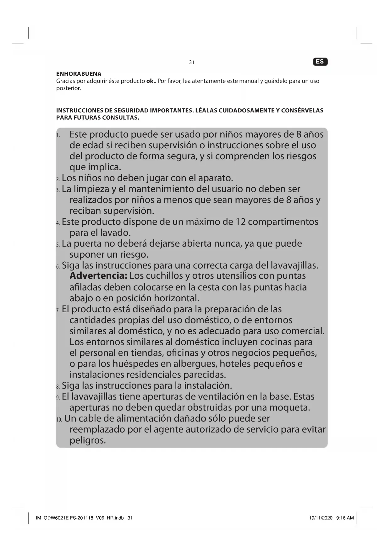 - ECO: Este programa es adecuado para limpiar vajillas con suciedad normal y, para este uso, es el programa más eciente en términos de su consumo combinado de energía y agua. Se usa para valorar el cumplimiento con la legislación de ecodiseño de la UE. Nota: Los valores indicados para programas distintos al programa ECO son solamente indicativos. IM_ODW6021E FS-201118_V06_HR.indb 40IM_ODW6021E FS-201118_V06_HR.indb 40 19/11/2020 9:16 AM19/11/2020 9:16 AM41