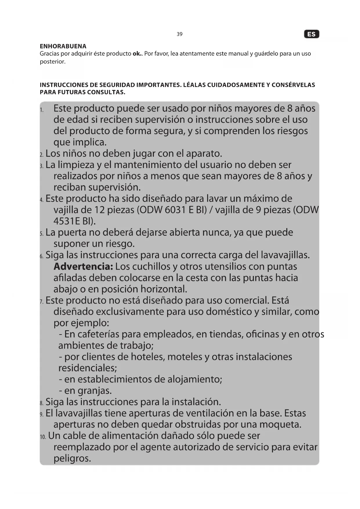 ODW 6031 E BI - Lavavajillas OK - Manual de uso y guía de instrucciones gratis