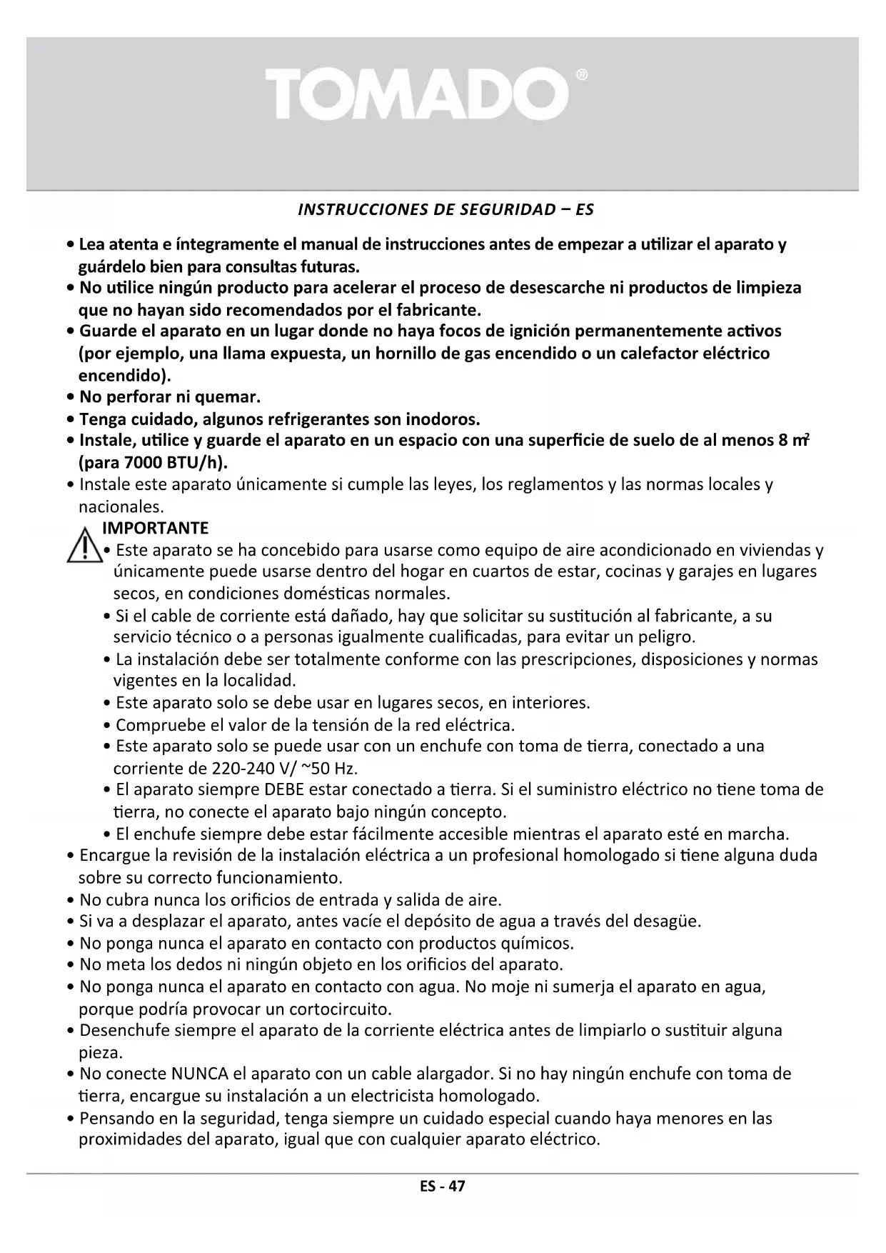 TMA7000B - Aire acondicionado Tomado - Manual de uso y guía de instrucciones gratis