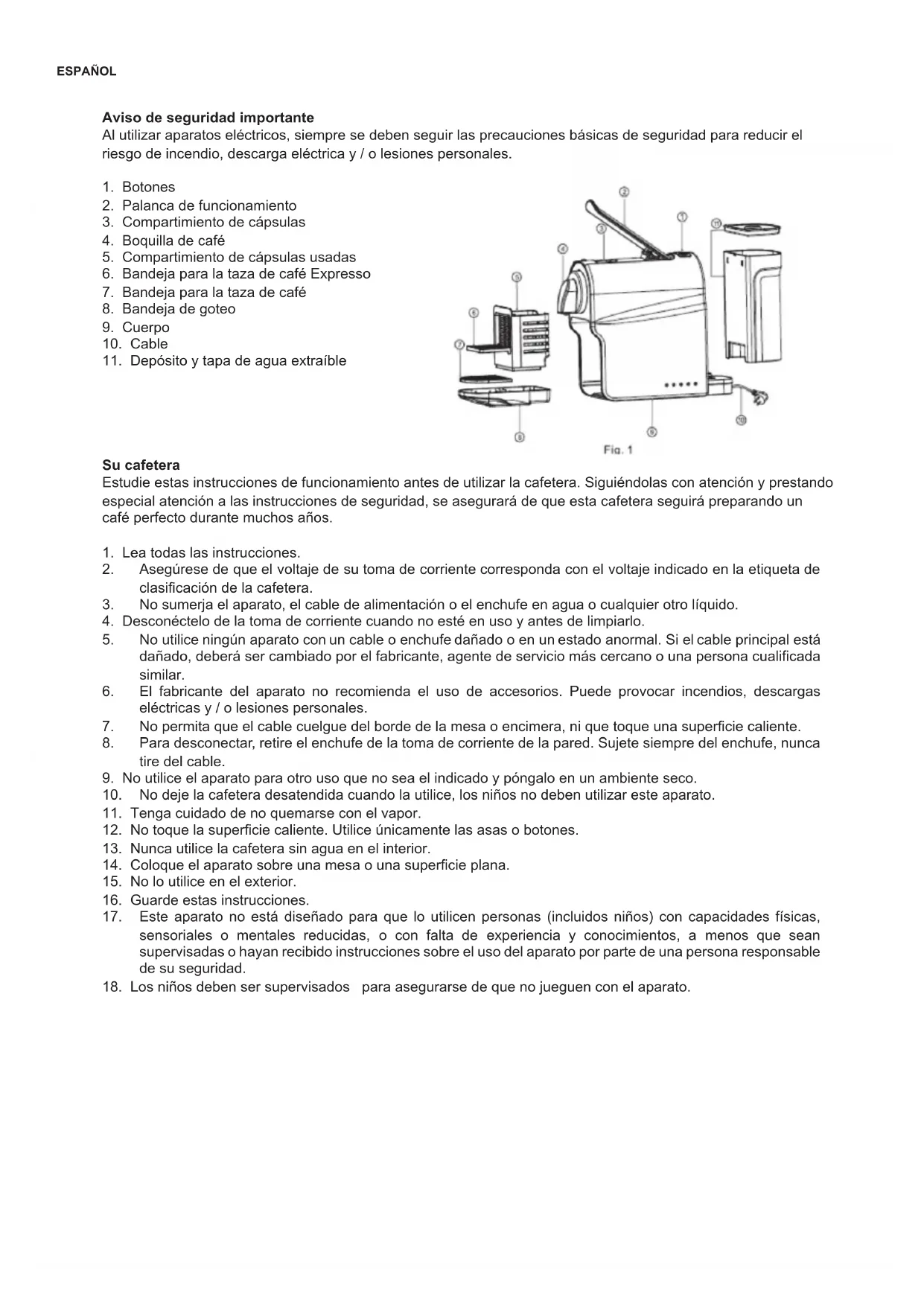 10. No deje la cafetera desatendida cuando la utilice, los niños no deben utilizar este aparato.