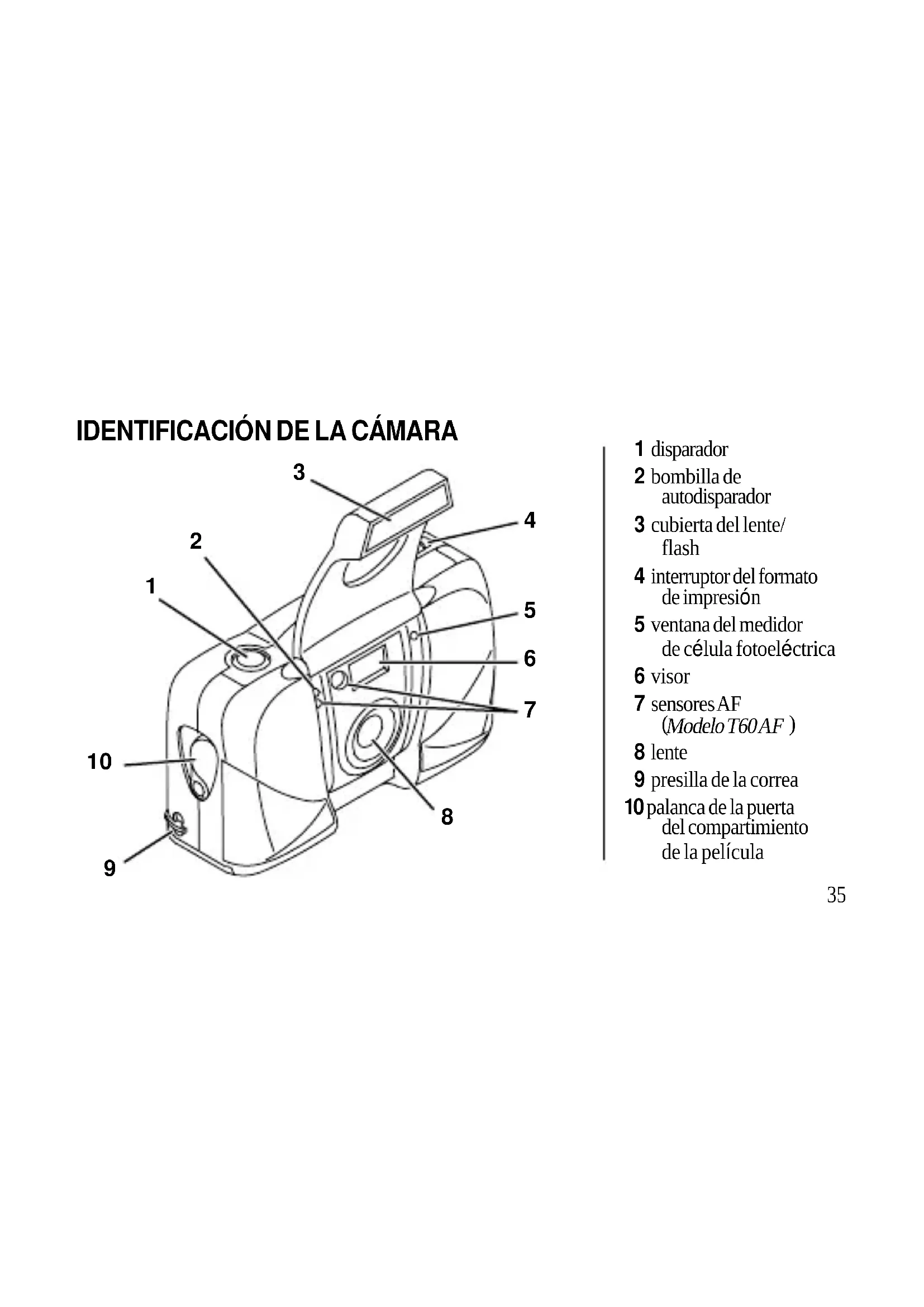 NOTA: En esta CAMERA, no suece volver a pagar un cartucho depellicula parcialmente expuesto y continua tomando fotografias.