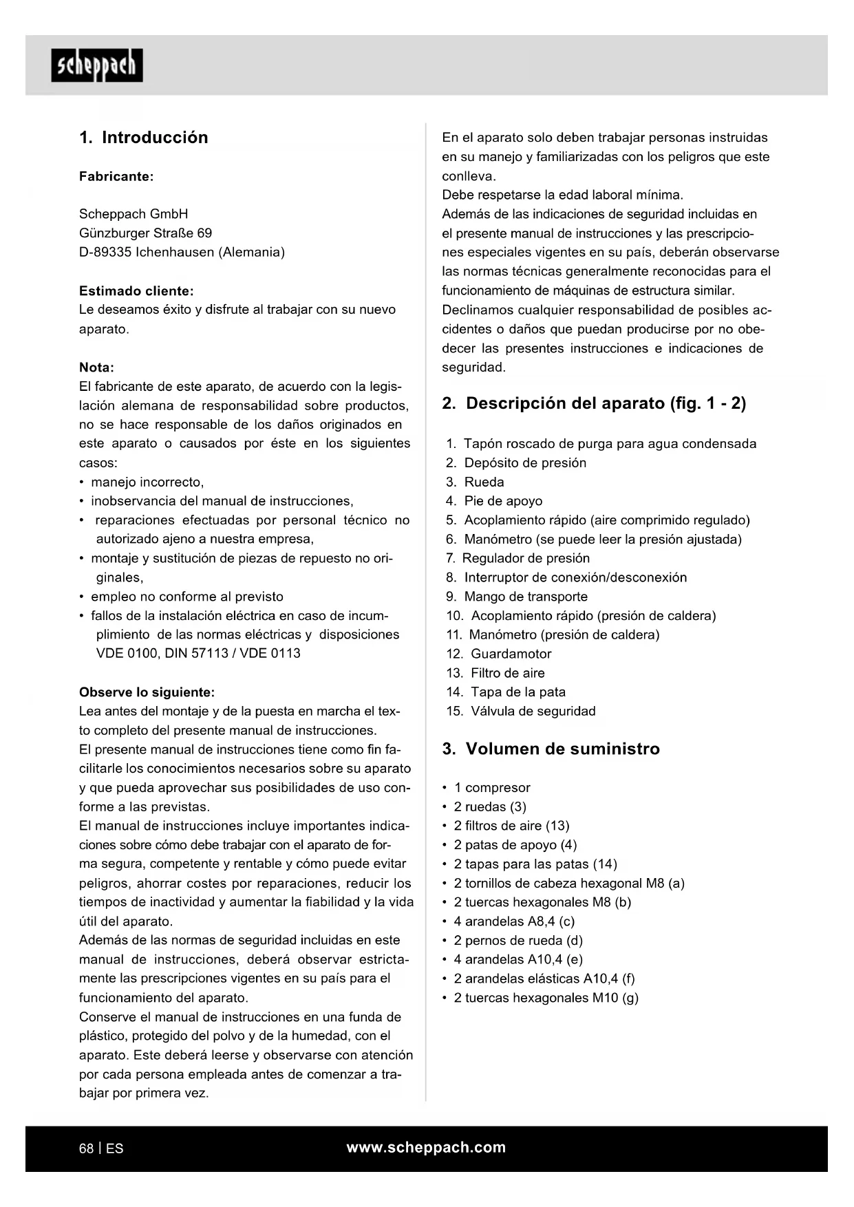 HC104DC - Compresor SCHEPPACH - Manual de uso y guía de instrucciones gratis