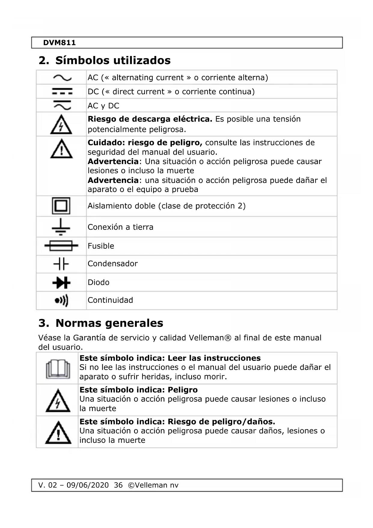 Este símbolo indica: Riesgo de peligro/daños. Una situación o acción peligrosa puede causar daños, lesiones o incluso la muerteDVM811