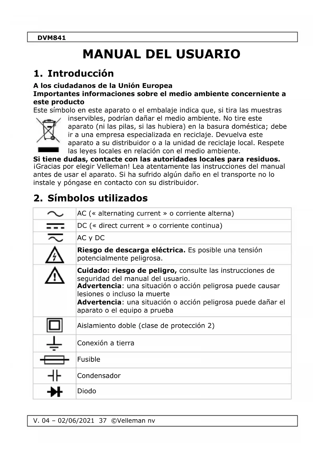 Descarga las instrucciones para tu Multímetro en formato PDF gratis! Encuentra tus instrucciones DVM841 - VELLEMAN y toma tu dispositivo electrónico nuevamente en la mano. En esta página están publicados todos los documentos necesarios para el uso de su dispositivo. DVM841 de la marca VELLEMAN.