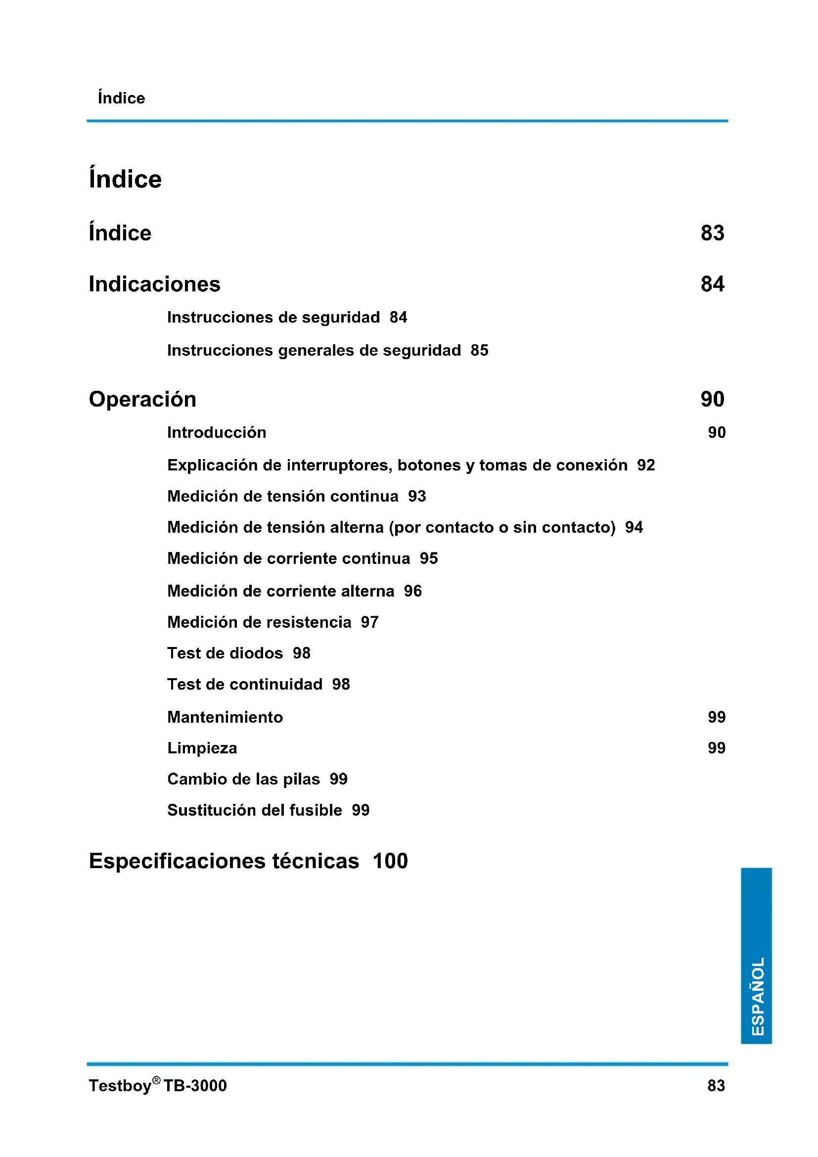 TB3000 - Multímetro Testboy - Manual de uso y guía de instrucciones gratis