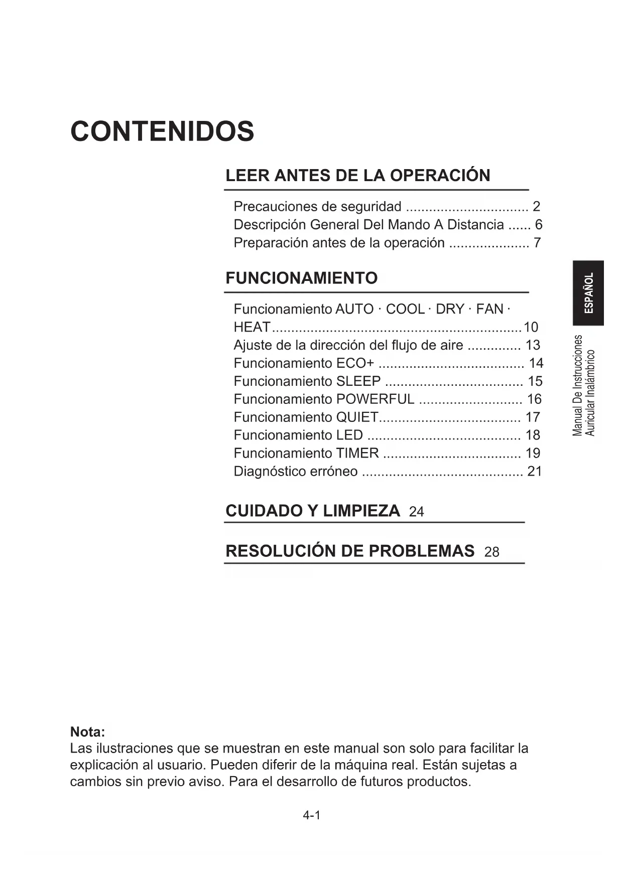 Precauciones de seguridad ................................ 2 Descripción General Del Mando A Distancia ...... 6 Preparación antes de la operación ..................... 7 FUNCIONAMIENTO Funcionamiento AUTO
