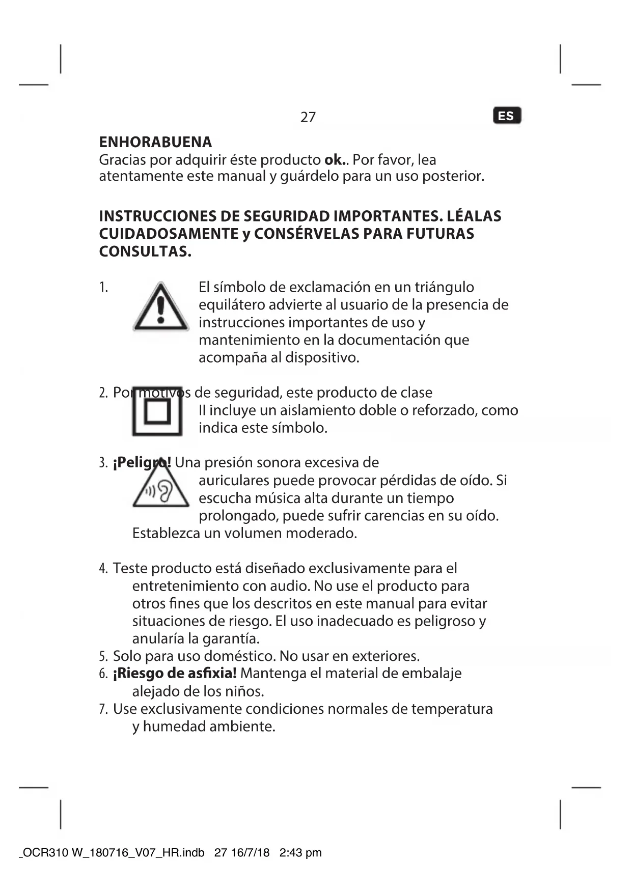 ventilación con otros elementos como pudieran ser periódicos, trapos de cocina, cortinas, etc. No insertar ningún objeto. IM_OCR310 W_180716_V07_HR.indb 31 16/7/18 2:43 pm32 Size - 90 x 127 mm