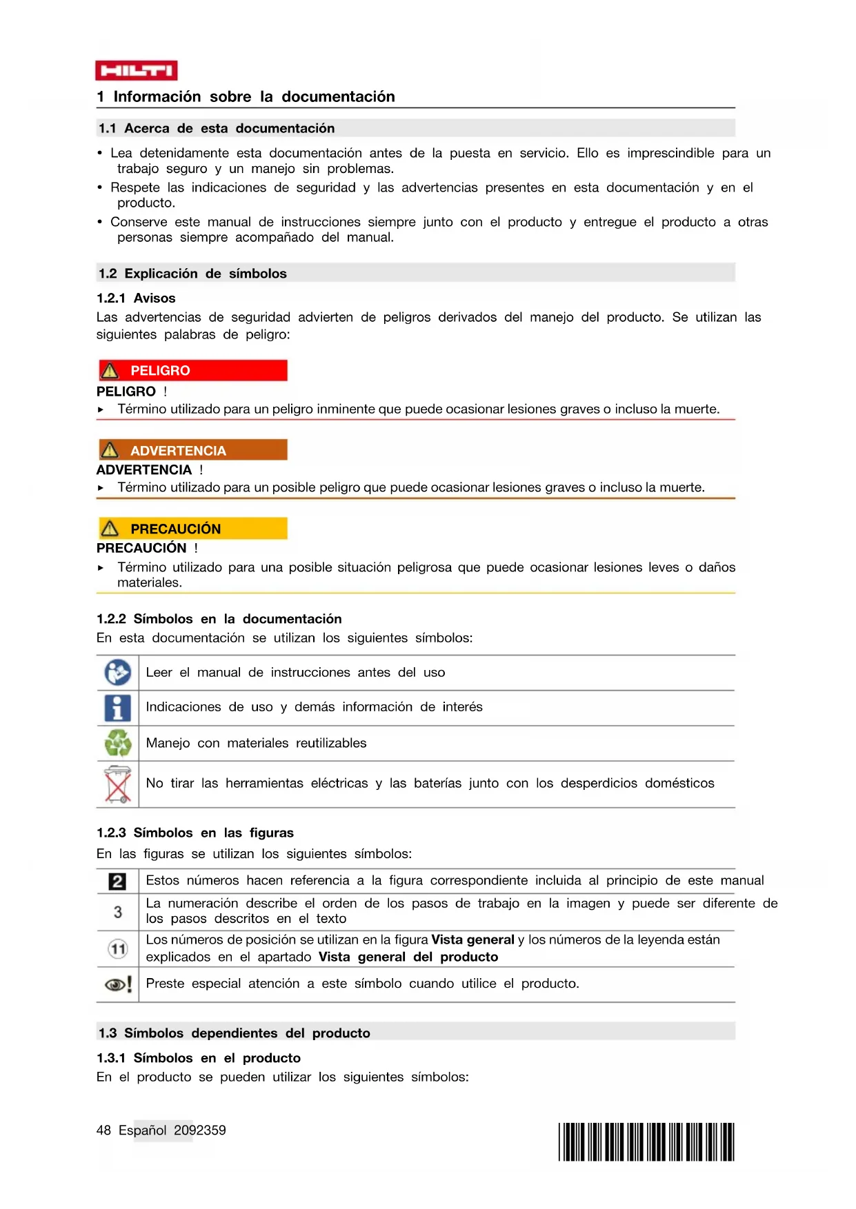 1.3 Símbolos dependientes del producto