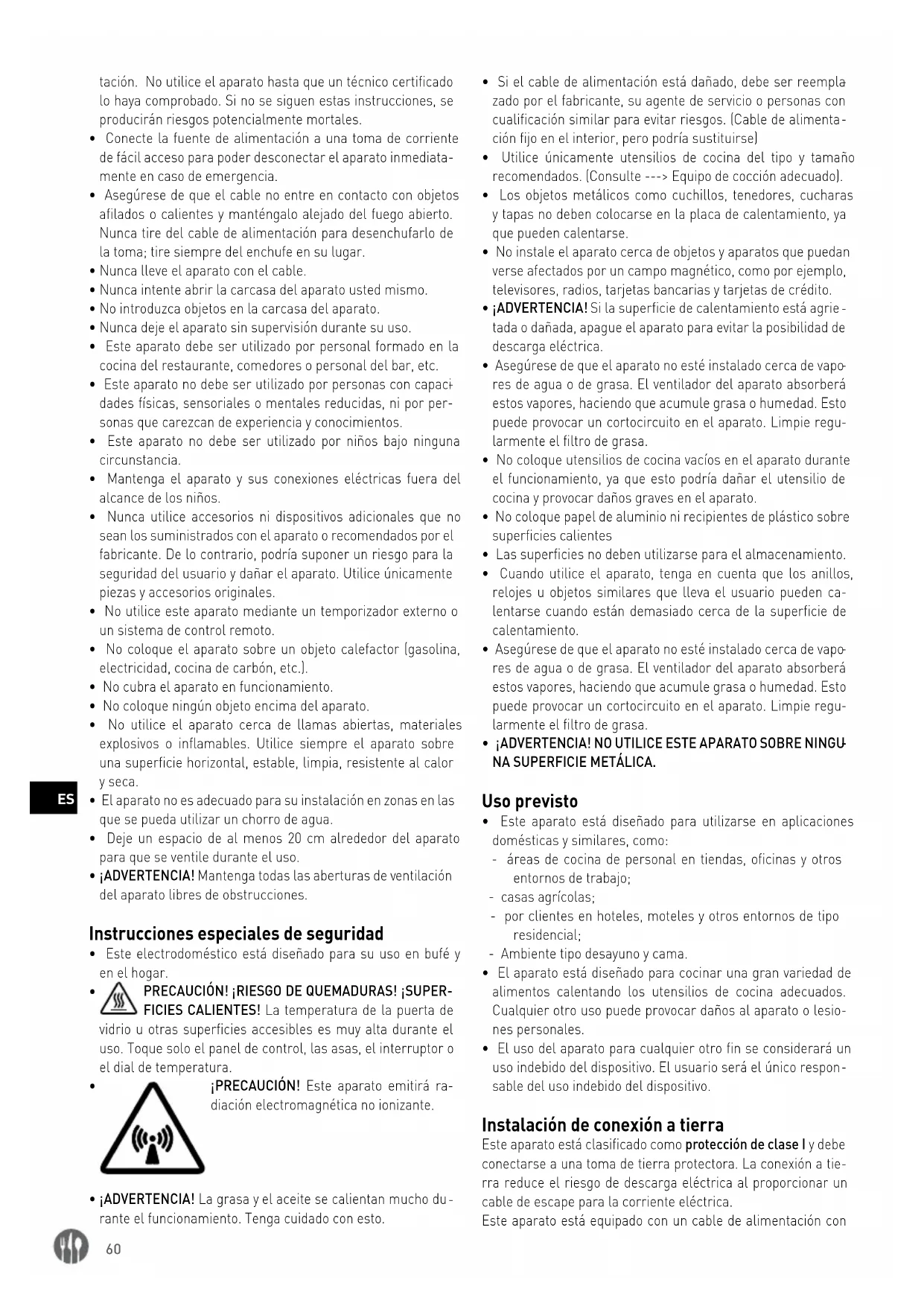 - Este aparato debe ser utilizado por personal formado en la cocina del restaurante, comedores o personal del bar, etc.
