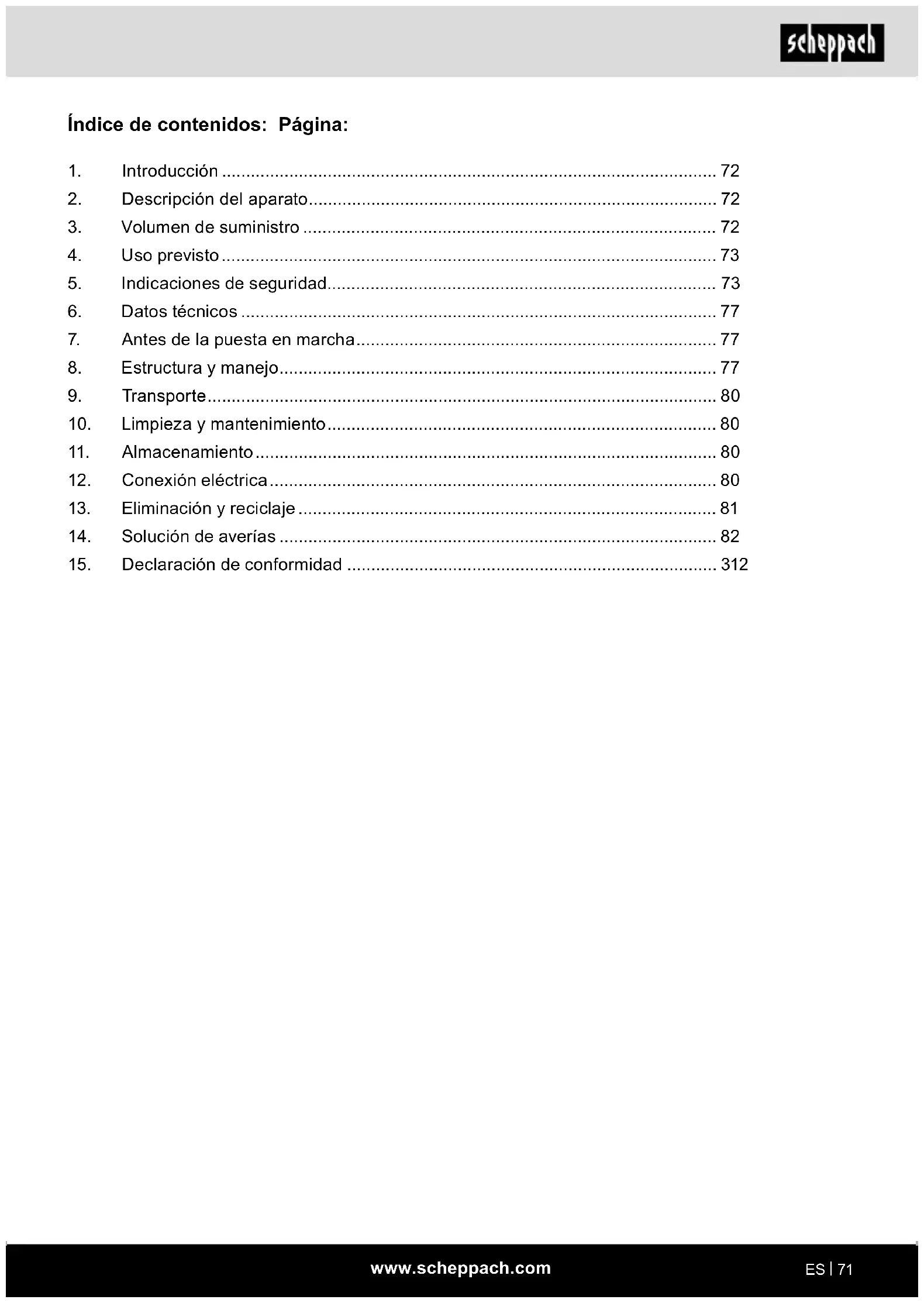 - Conserve el embalaje por si fuera preciso hasta la extinción del período de garantía.www.scheppach.com