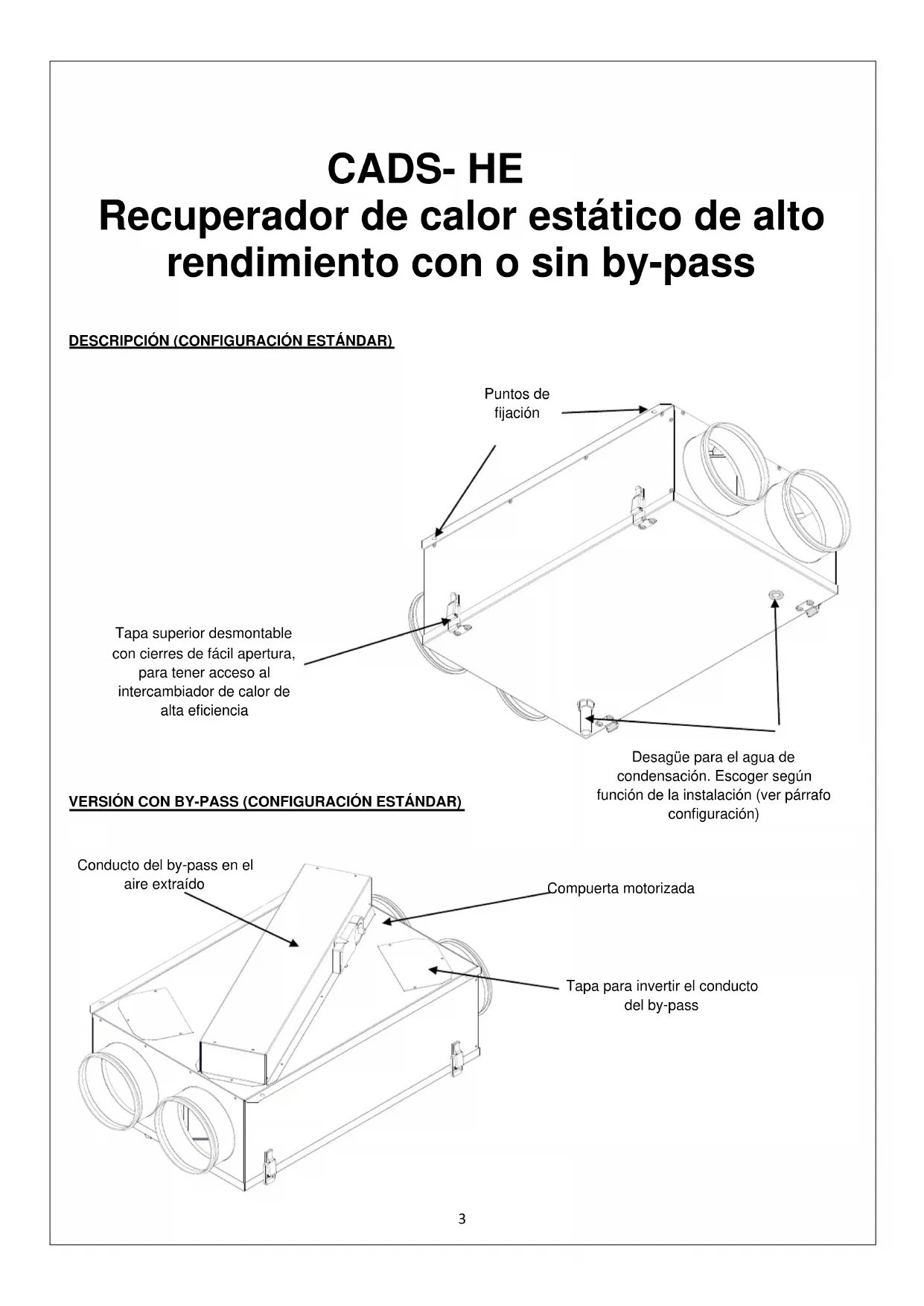 CADS- HE Recuperador de calor estático de alto rendimiento con o sin by-pass DESCRIPCIÓN (CONFIGURACIÓN ESTÁNDAR)