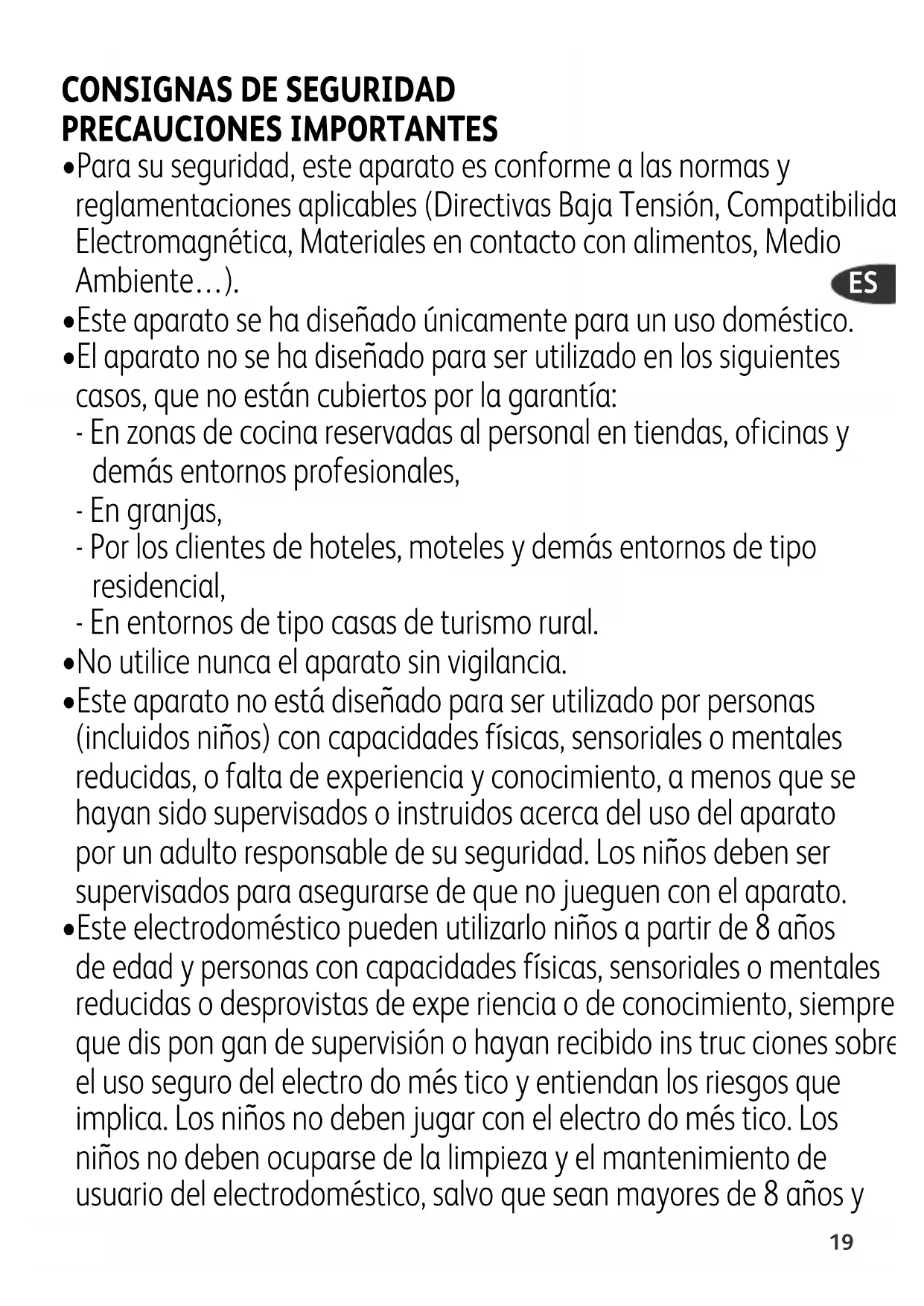 CREPARTY-new-2100078095 08/04/13 13:59 Page19estén supervisados por un adulto. Mantenga el electrodoméstico y su cable de alimentación fuera del alcance de los niños menores de 8 años.